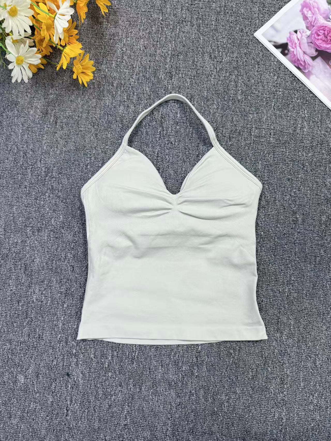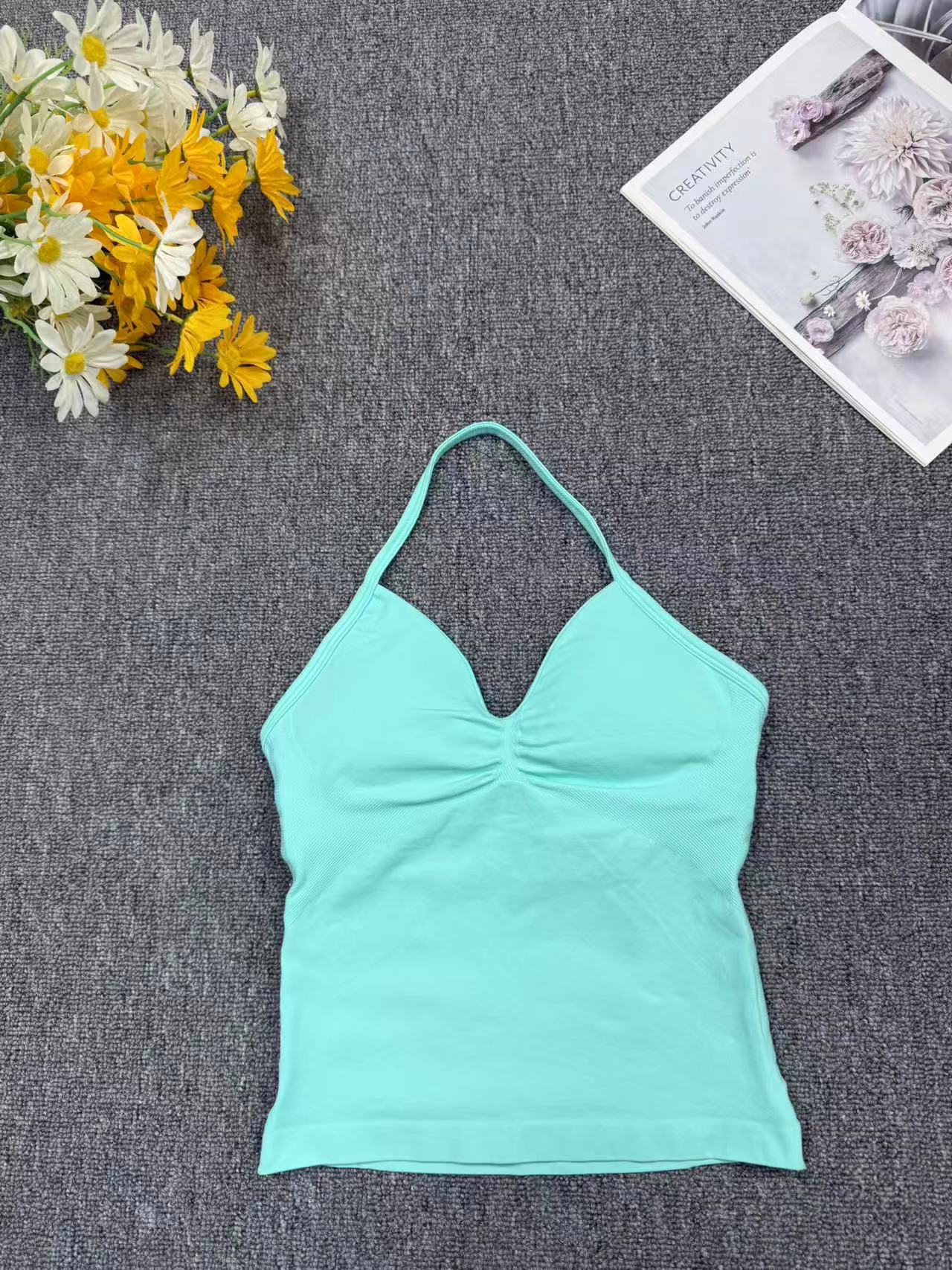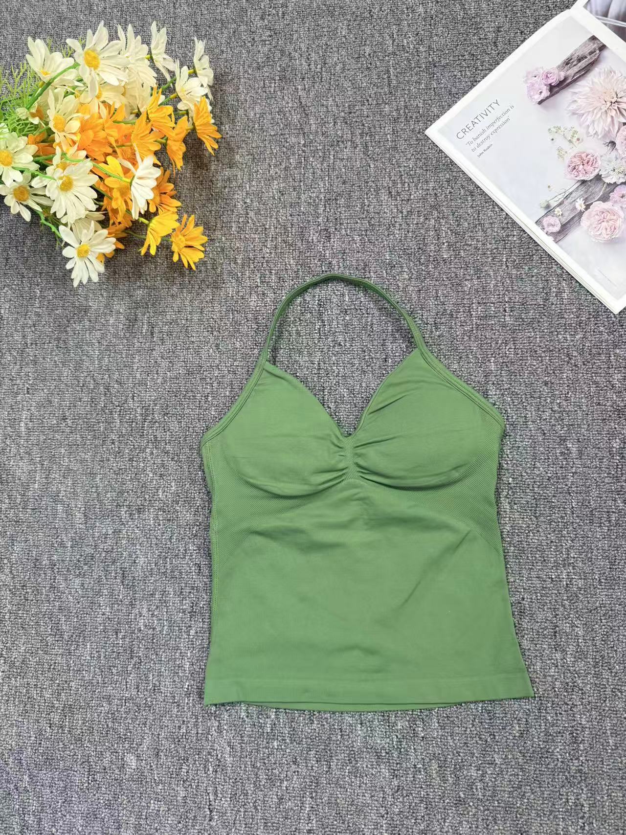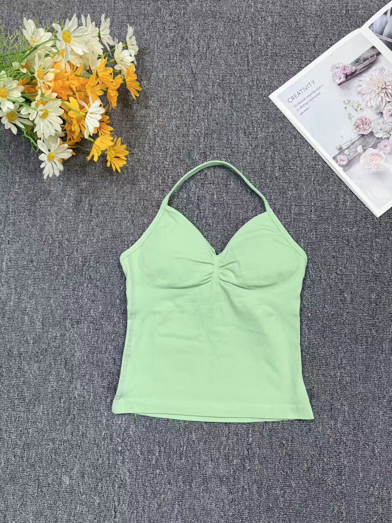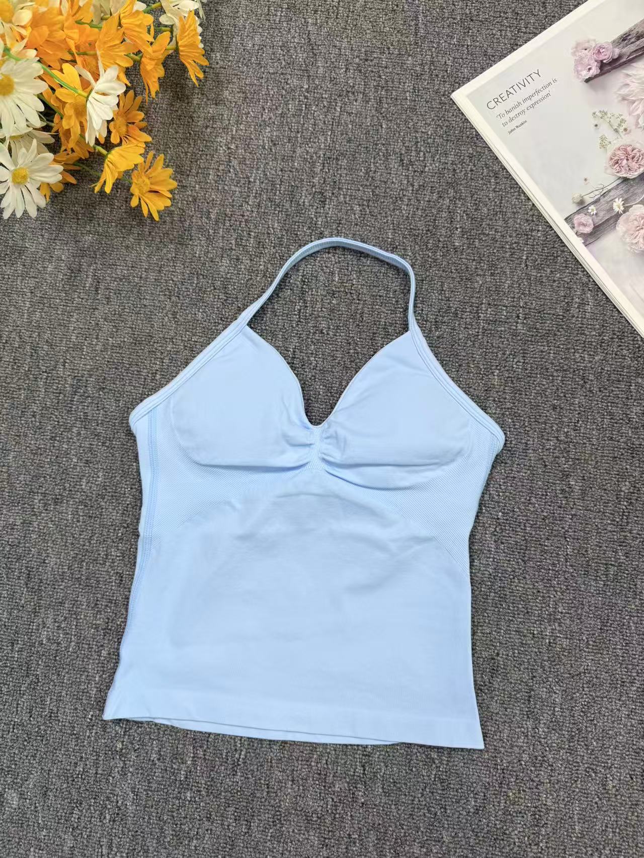 새로운 솔리드 컬러 스포츠 요가 조끼 여름 슬림 피트 속건성 요가 탑 허리 피트니스 탑 여성 도매스토어 가기