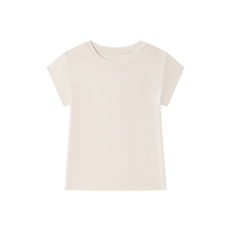 여름 텐셀 울 반팔 티셔츠 여성용 라운드 넥 디자인 슬림 슬리브 2025 새로운 솔리드 컬러 편안한 탑