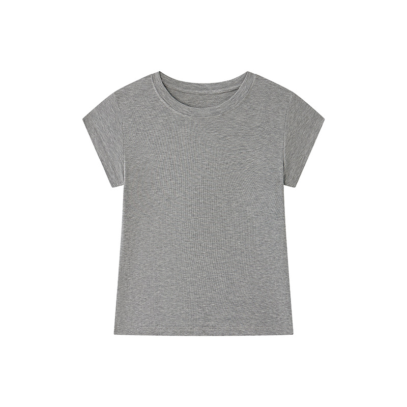 여름 텐셀 울 반팔 티셔츠 여성용 라운드 넥 디자인 슬림 슬리브 2025 새로운 솔리드 컬러 편안한 탑스토어 가기