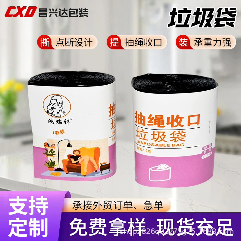 가정용 매일 사용을 위한 도매 플랫 쓰레기 봉투 졸라매는 끈 블랙 두껍고 강한 양면 2.2 실크 쓰레기 봉투스토어 가기