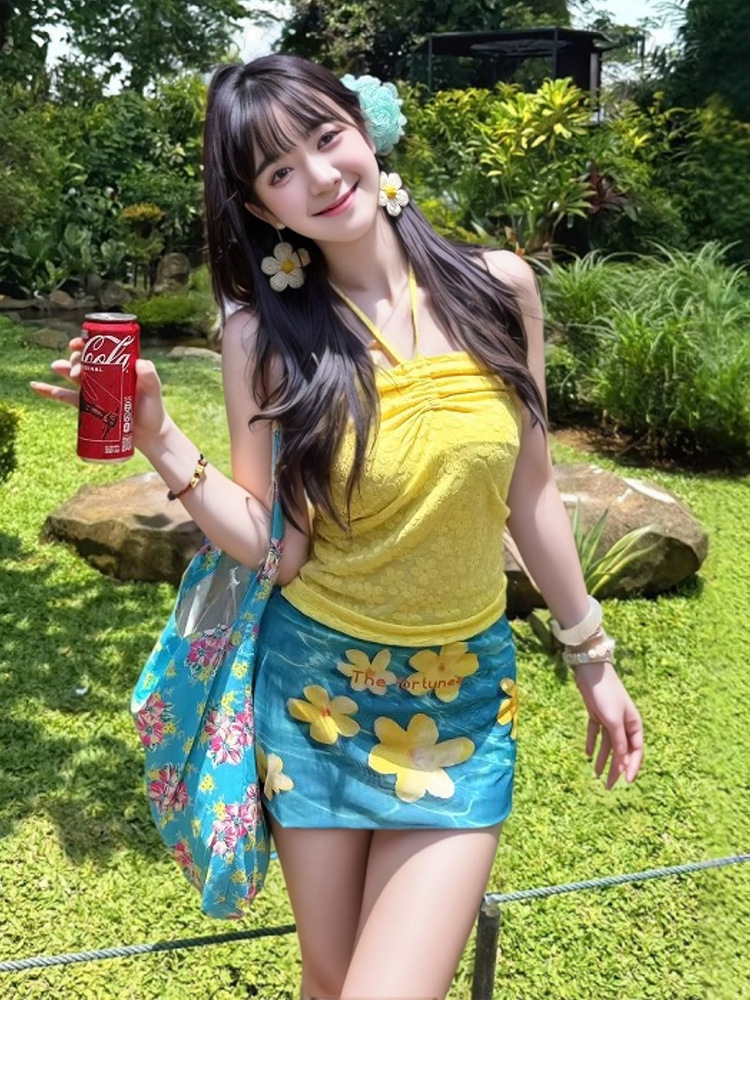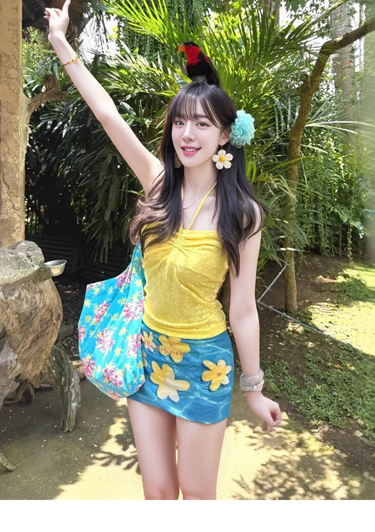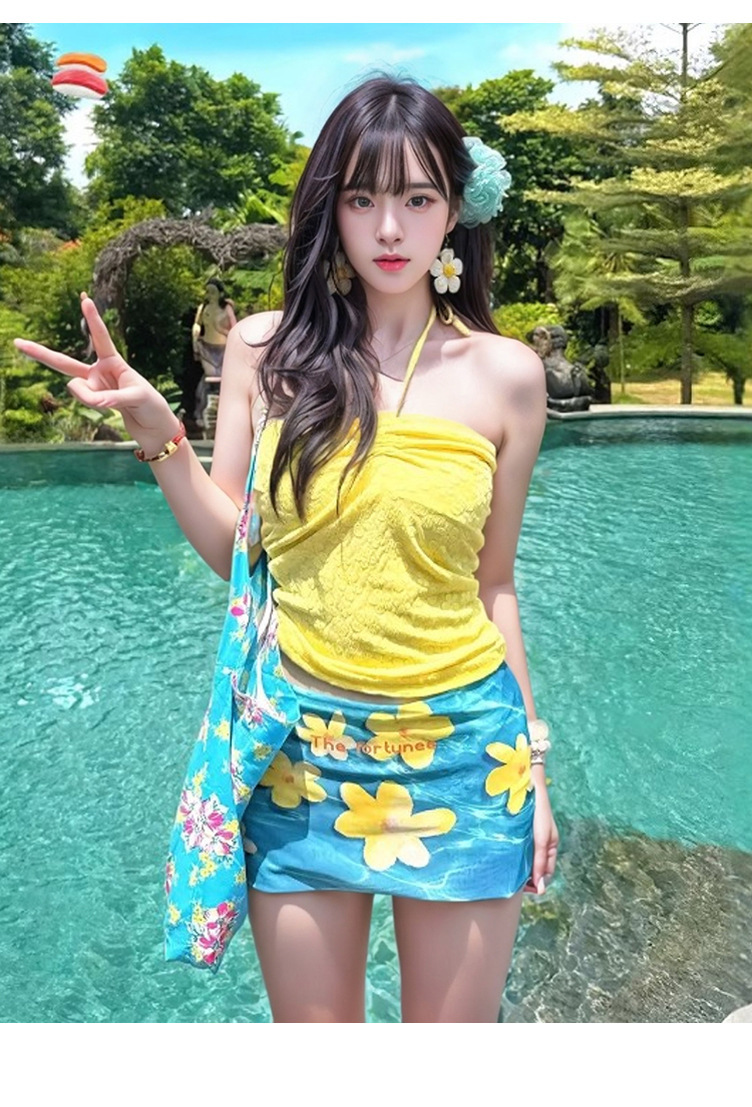 새로운 스타일의 여성용 수영복, 3피스 비키니 세트, 해변 휴가용, 고급 폴리에스터 튜브탑, 온천 워터톤 9186스토어 가기