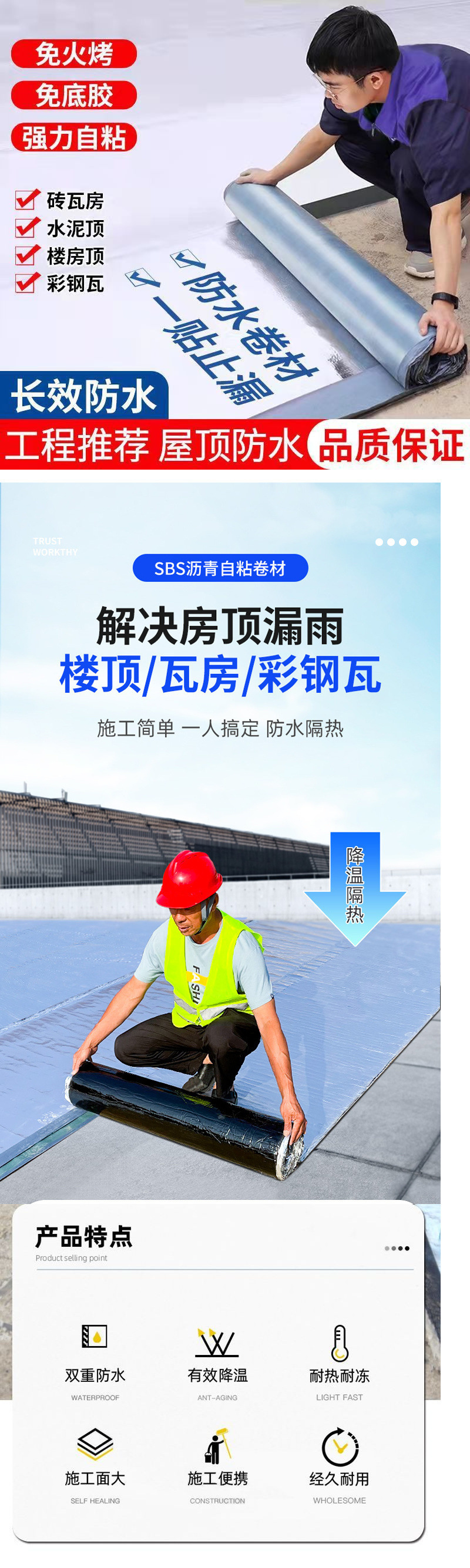 자체 접착 방수 시트 캐빈 지붕 방수 재료 누수 방지 테이프 SBS 아스팔트 두꺼운 자체 접착 누수 방지