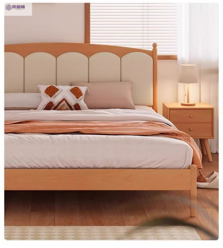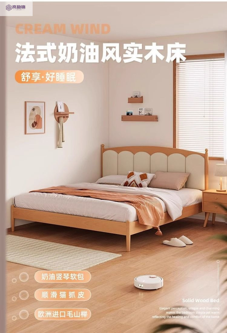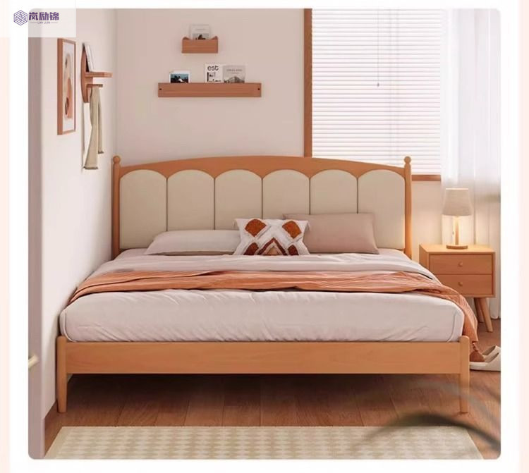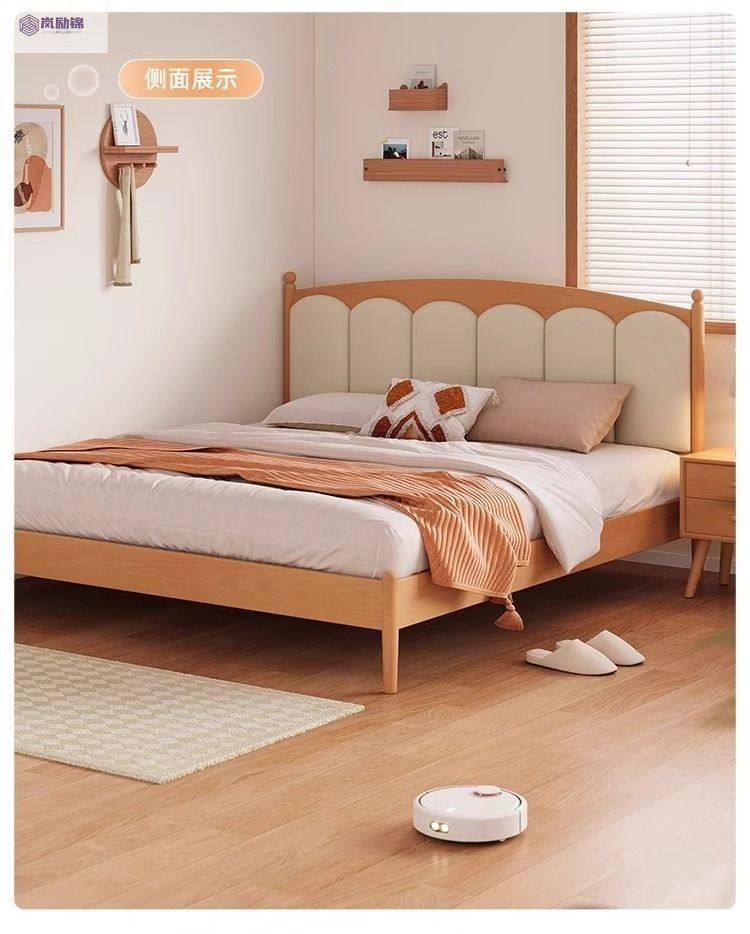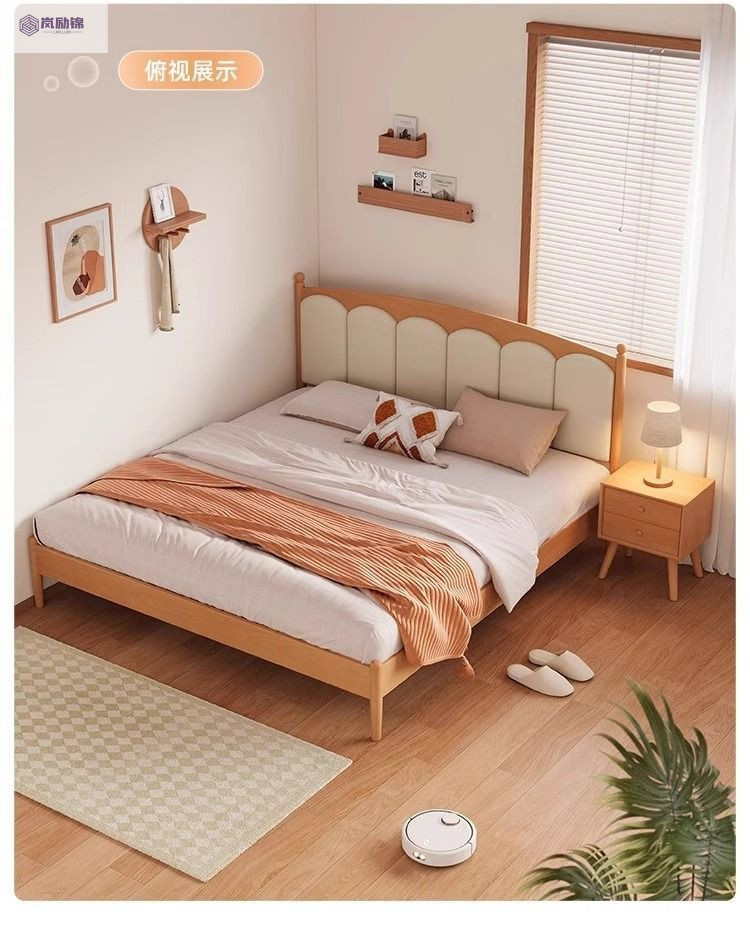 가정용 침실을위한 너도밤 나무 단단한 침대 1.8 더블 침대 크림 스타일 1.5 싱글 작은 아파트 소년 소녀 어린이 침대스토어 가기