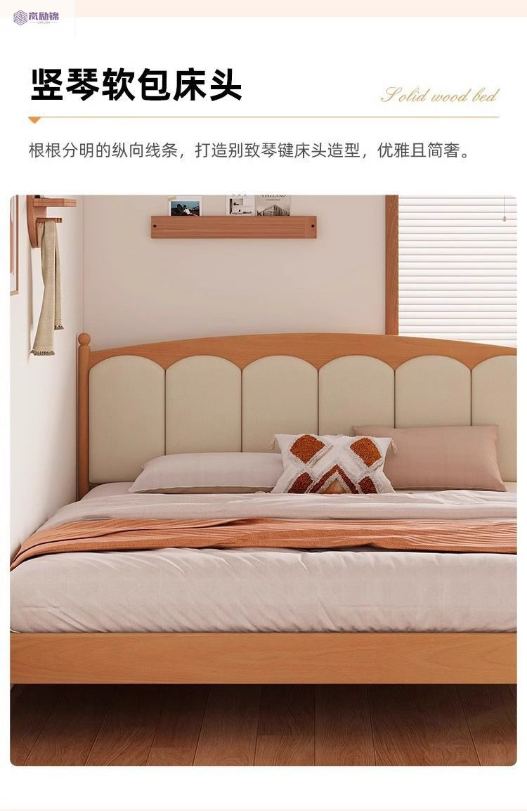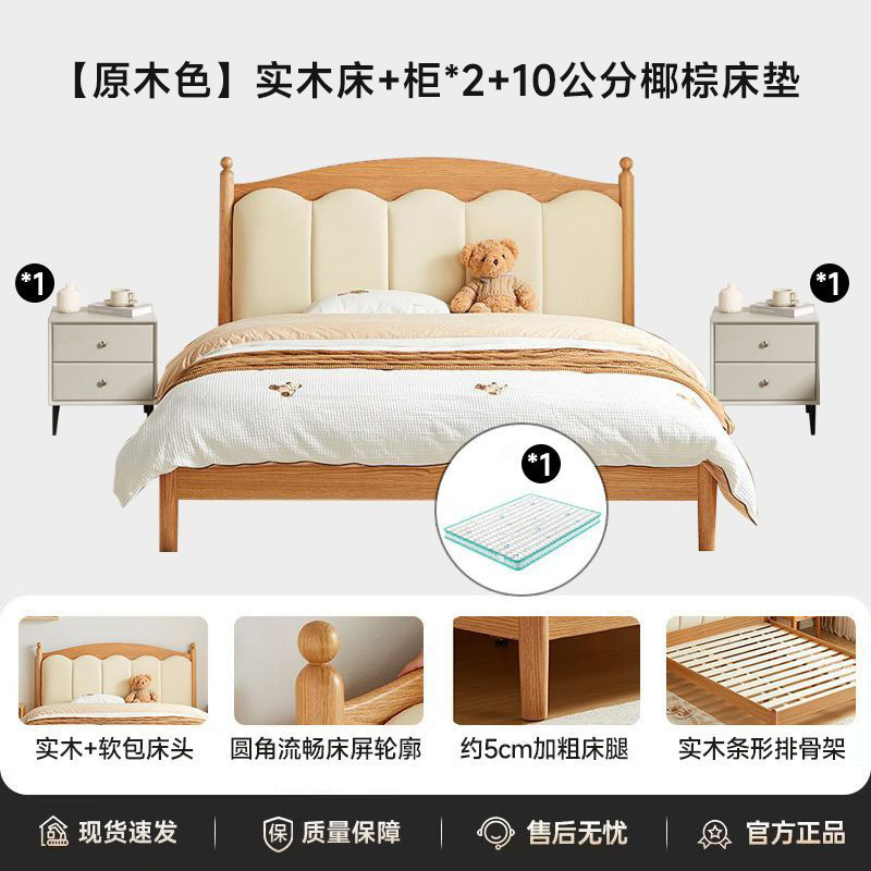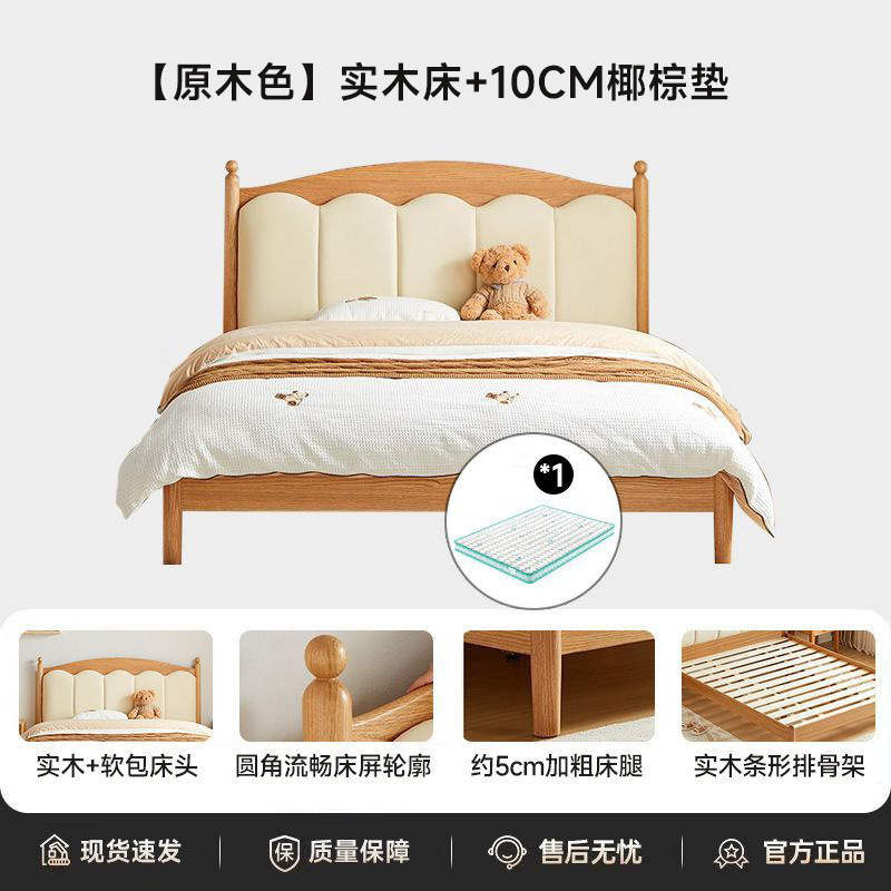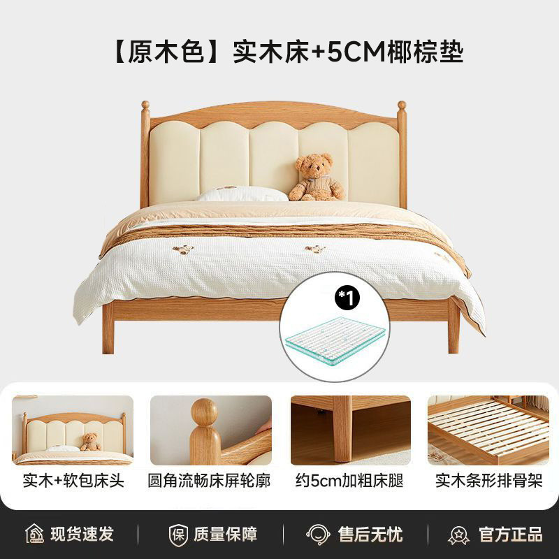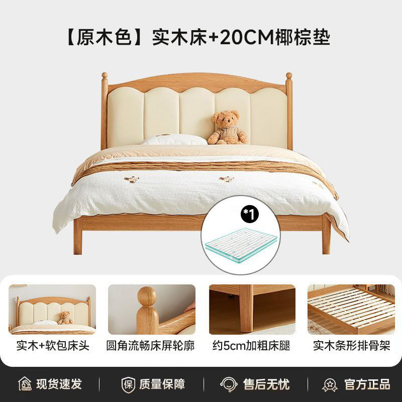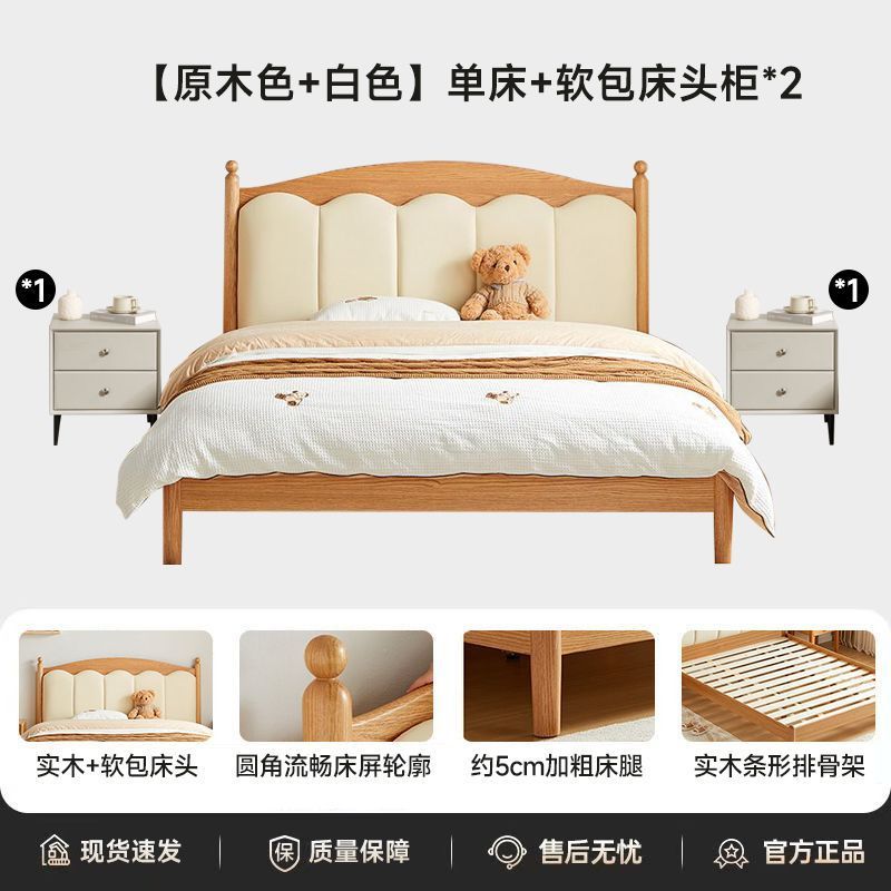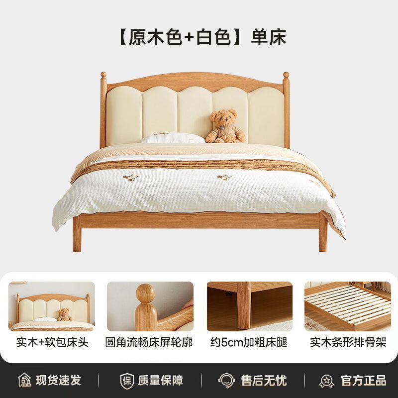 가정용 침실을위한 너도밤 나무 단단한 침대 1.8 더블 침대 크림 스타일 1.5 싱글 작은 아파트 소년 소녀 어린이 침대