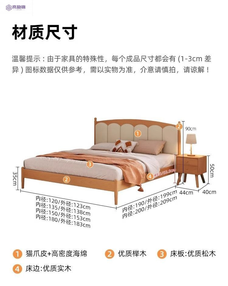 • [Lanlijin Flagship] 원목 침대 + 침대 옆 테이블*2
