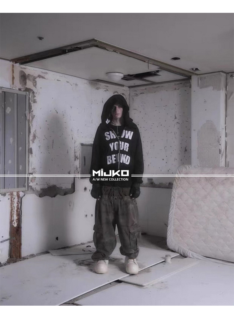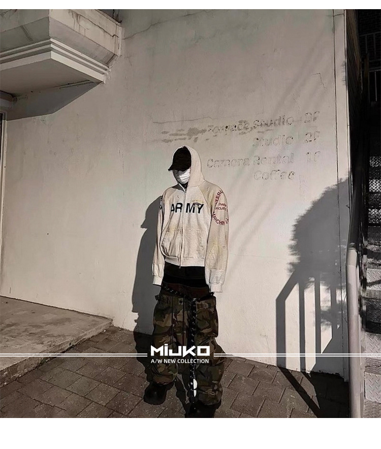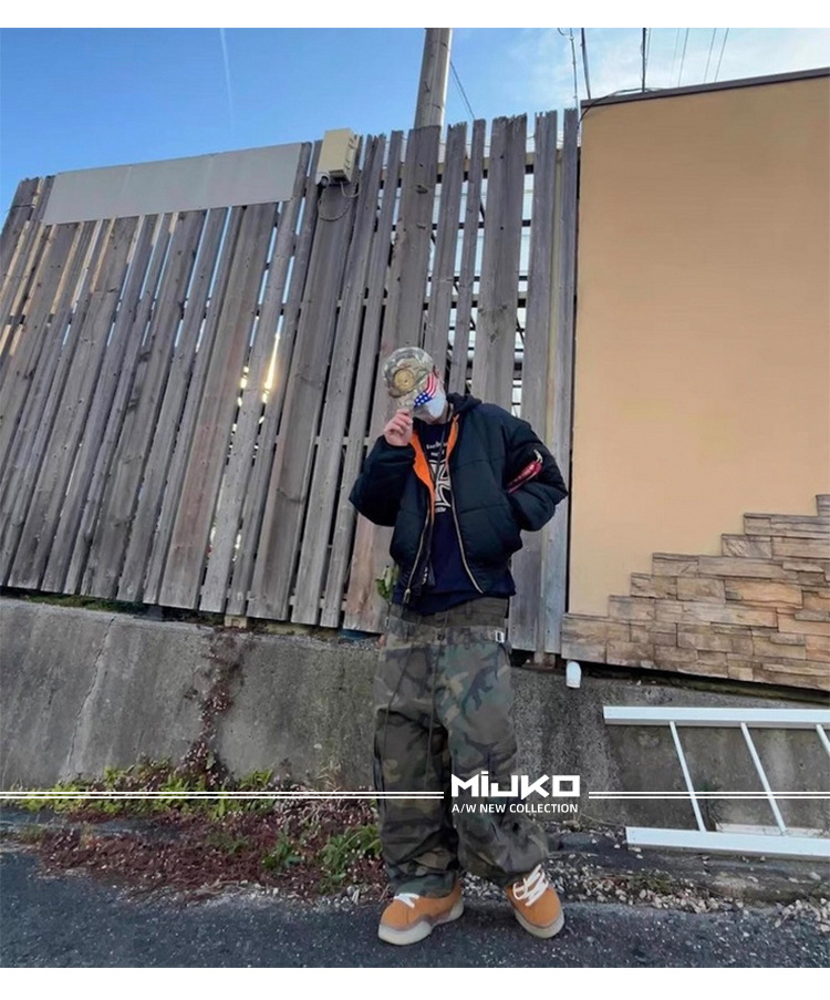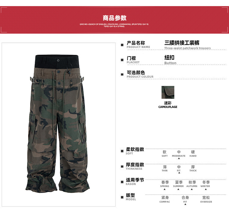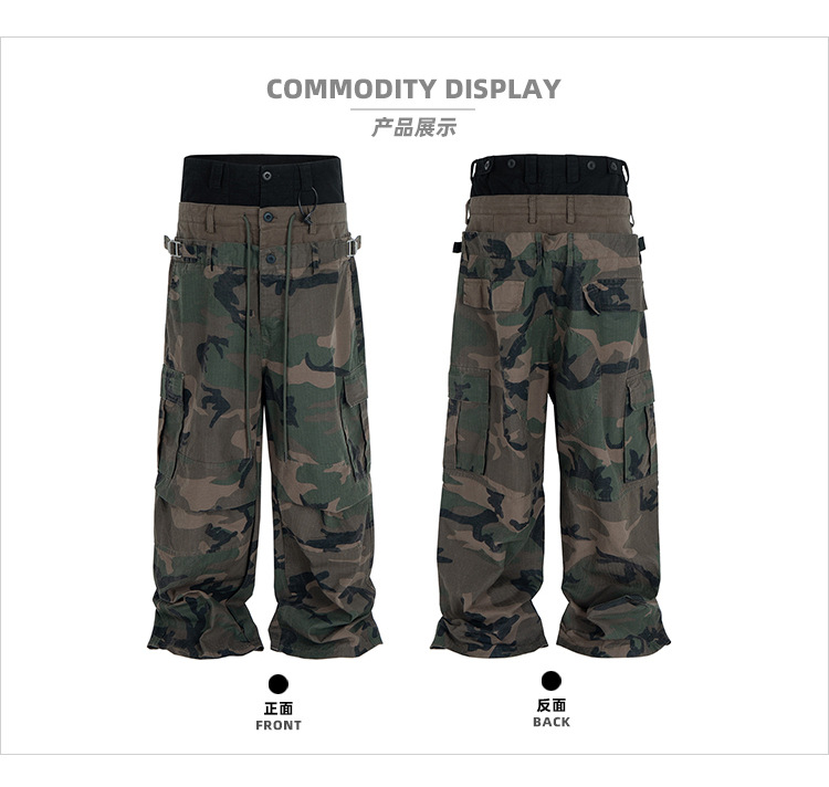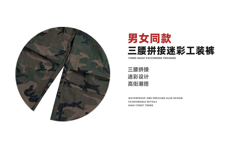 MIJKO 남성 및 여성 3개의 허리 스플라이싱 카모플라주 카고 바지 버튼 업 허리 디자인 캐주얼 스트레이트 바지 트렌디스토어 가기