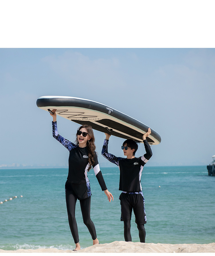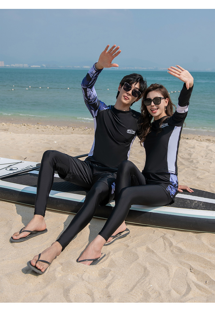 새로운 플러스 사이즈 커플 온천 스플릿 수영복 슬리밍 온천 긴팔 모래 바지 서핑 잠수복 세트