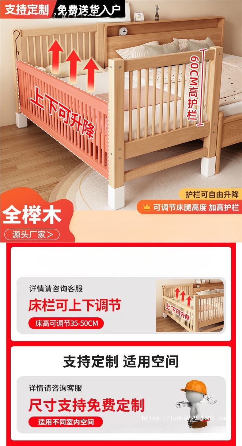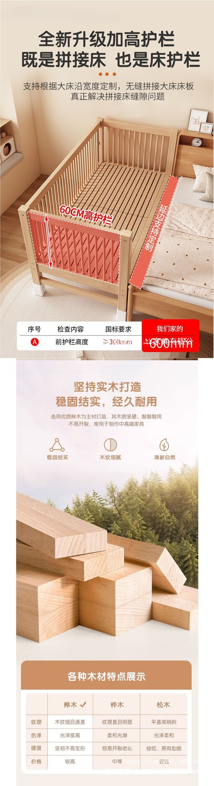 너도밤나무 접합 침대 어린이 침대 단단한 나무 유아용 침대 확장 접합 대형 침대 어린이 침대 옆 침대 어린이 접합 침대스토어 가기