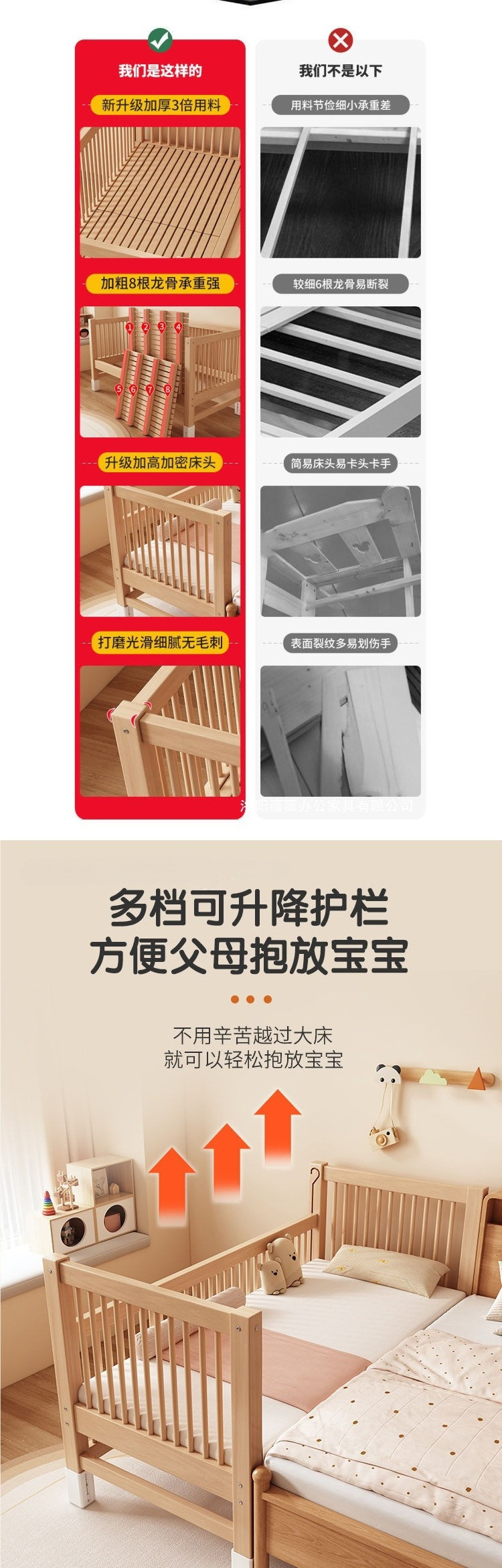 너도밤나무 접합 침대 어린이 침대 단단한 나무 유아용 침대 확장 접합 대형 침대 어린이 침대 옆 침대 어린이 접합 침대
