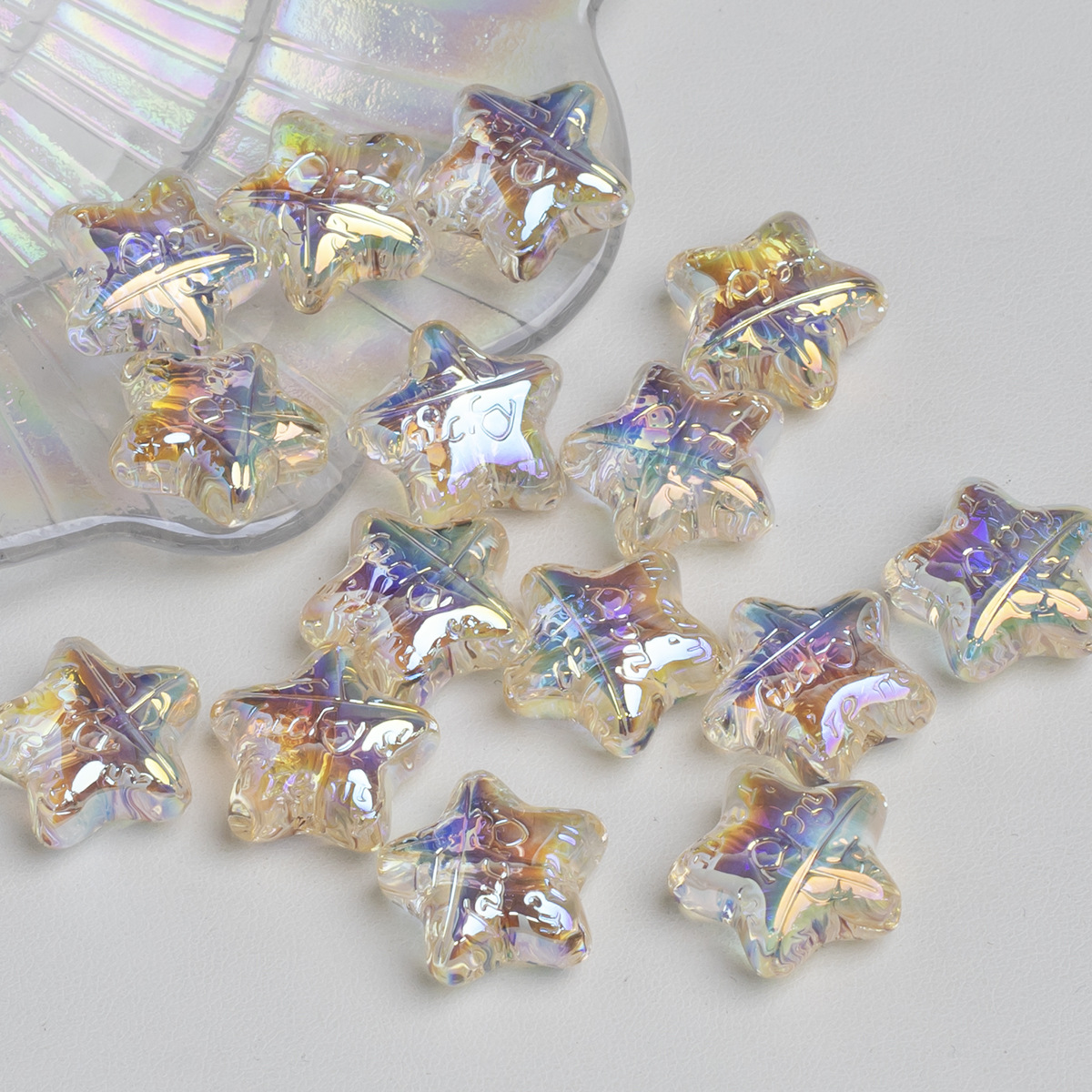 Mapei 냉월 투명 소원 별 전기 도금 아크릴 스루 홀 루즈 비즈 오각형 비즈 diy 휴대 전화 체인 액세서리