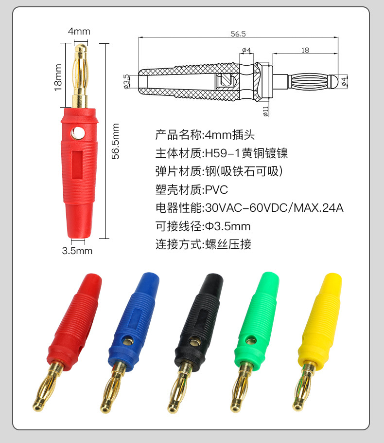 4mm 바나나 플러그 건 타입 연속 플러그/나사 없는 바나나 바나나 소켓 멀티미터 펜 플러그