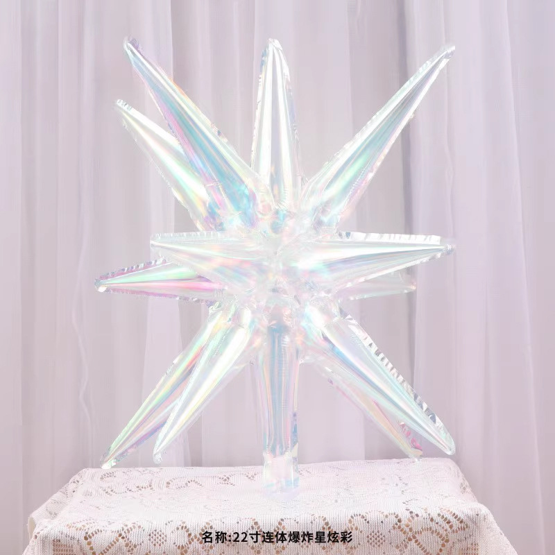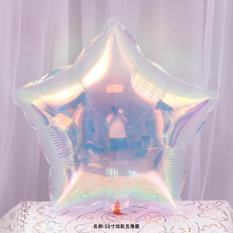 레이저 눈부신 무지개 4D 하트 원형 큐브 오각형 물방울 폭발성 별 꽃잎 알루미늄 필름 장식 풍선스토어 가기