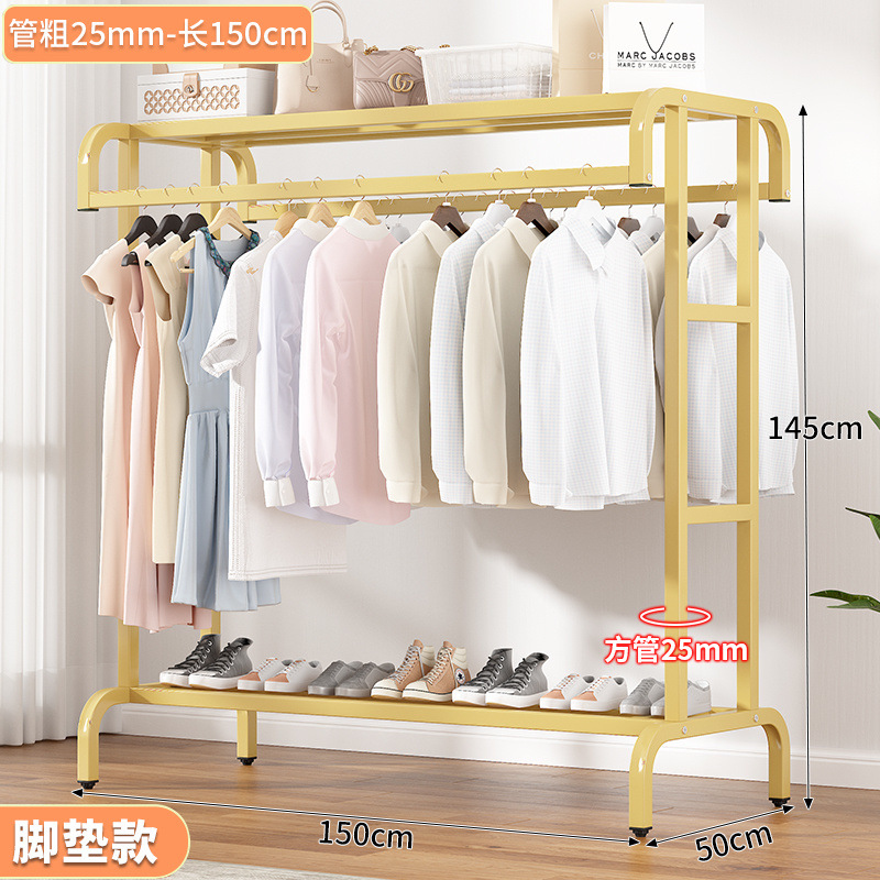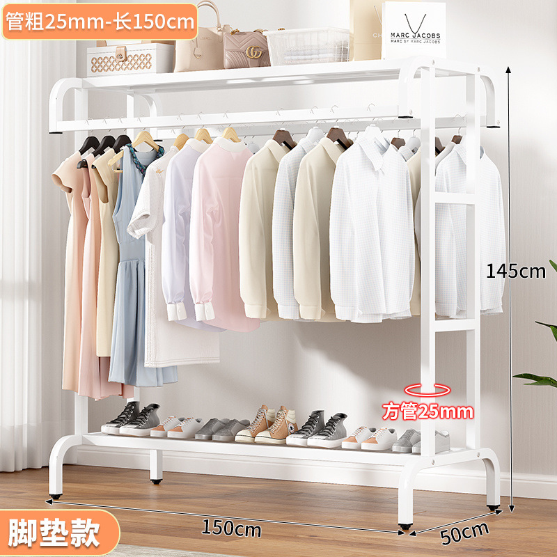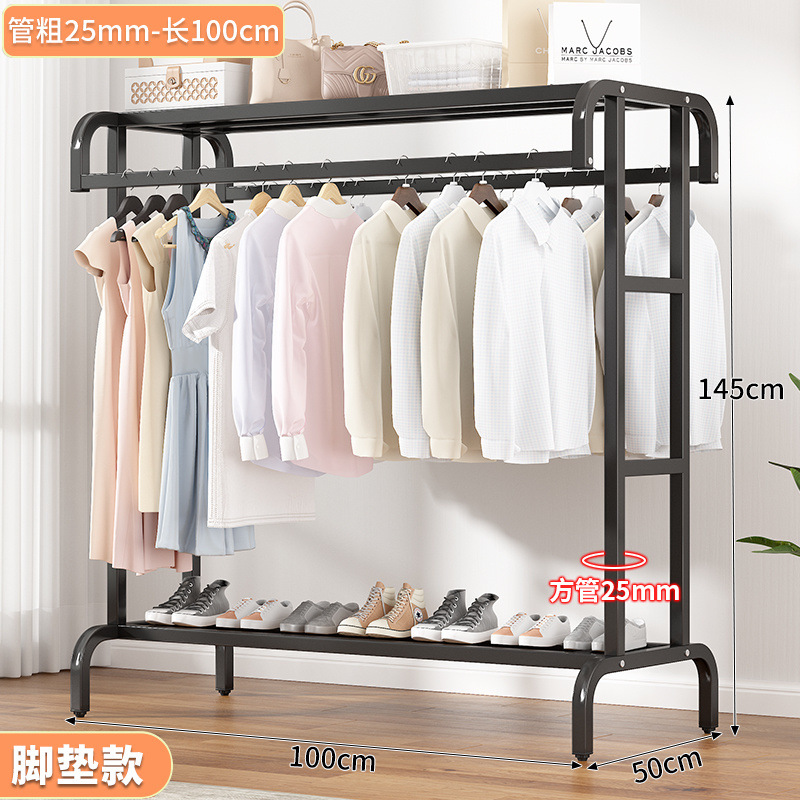 코트 랙 홈 침실 옷걸이 보관 랙 더블 로드 간단한 두꺼운 바닥 스탠딩 두꺼운 금속 옷걸이
