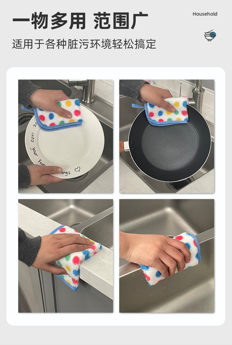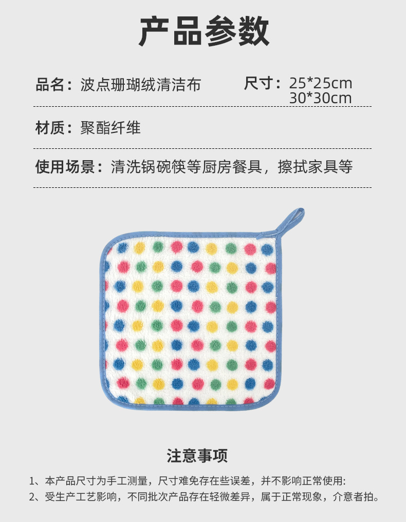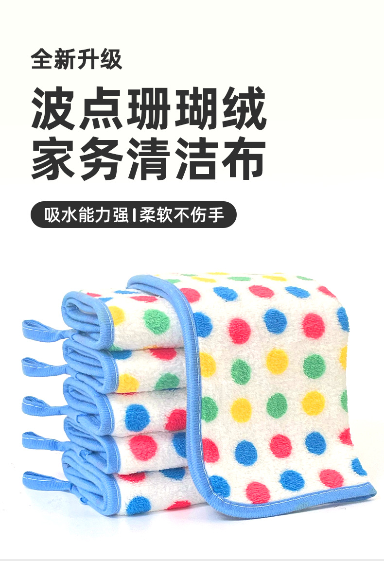 폴카 도트 산호 벨벳 걸레, 두껍고 흡수성이 뛰어난 사각형 수건, 주방 설거지용 천, 가정용 어린이 걸이형 보푸라기가 없음스토어 가기