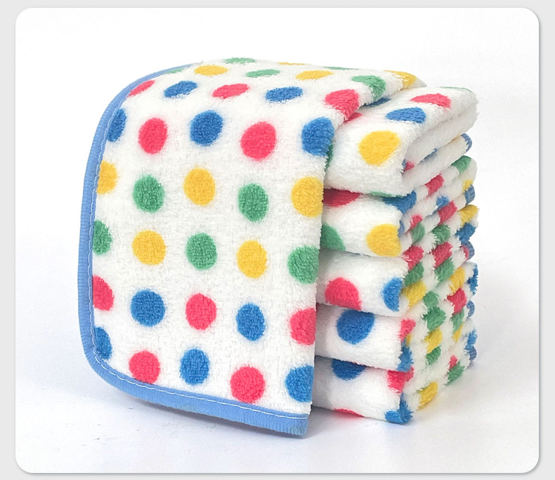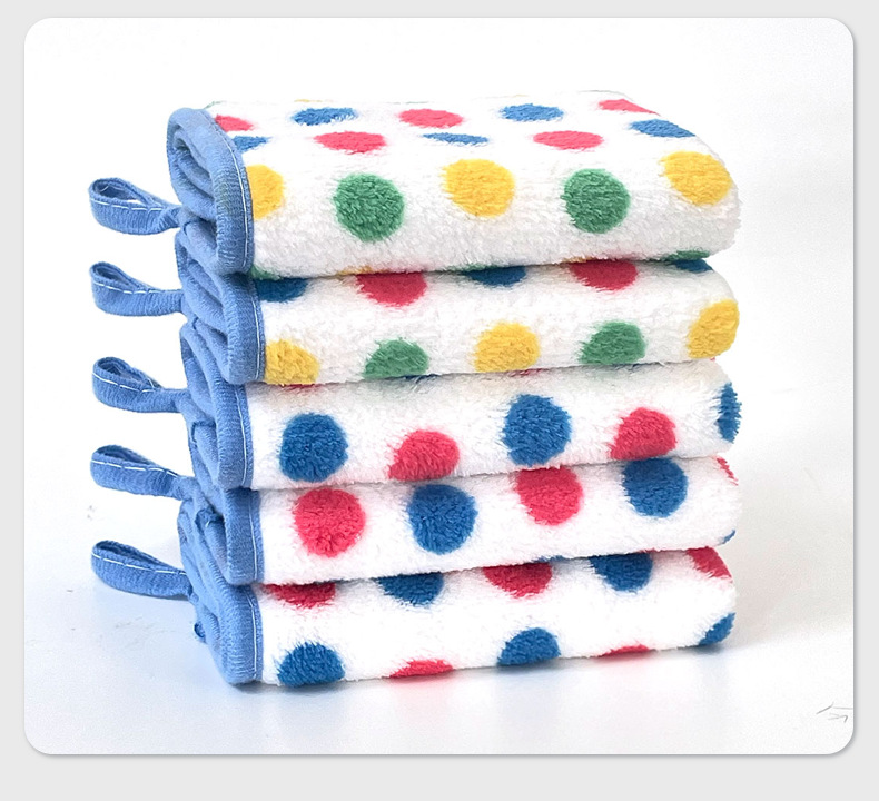 폴카 도트 산호 벨벳 걸레, 두껍고 흡수성이 뛰어난 사각형 수건, 주방 설거지용 천, 가정용 어린이 걸이형 보푸라기가 없음