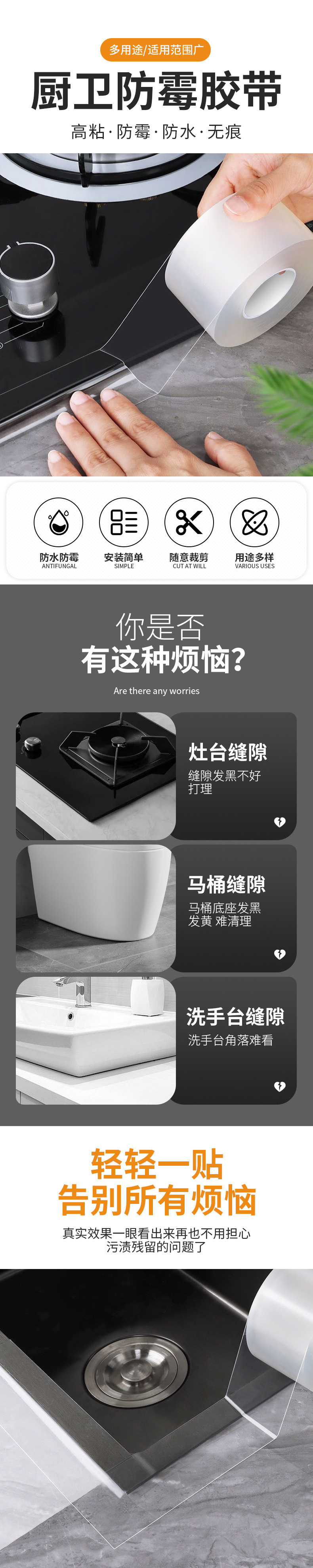 투명 스토브 주방 방수 테이프, 방유 및 곰팡이 방지 욕실 테이프, 미세 접합 테이프, 수영장 씰링 스트립스토어 가기