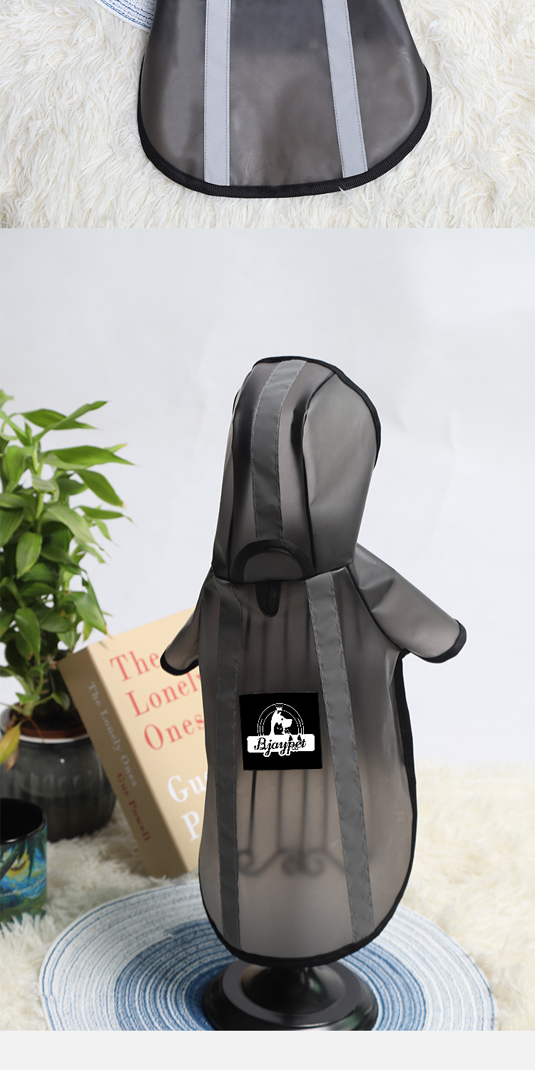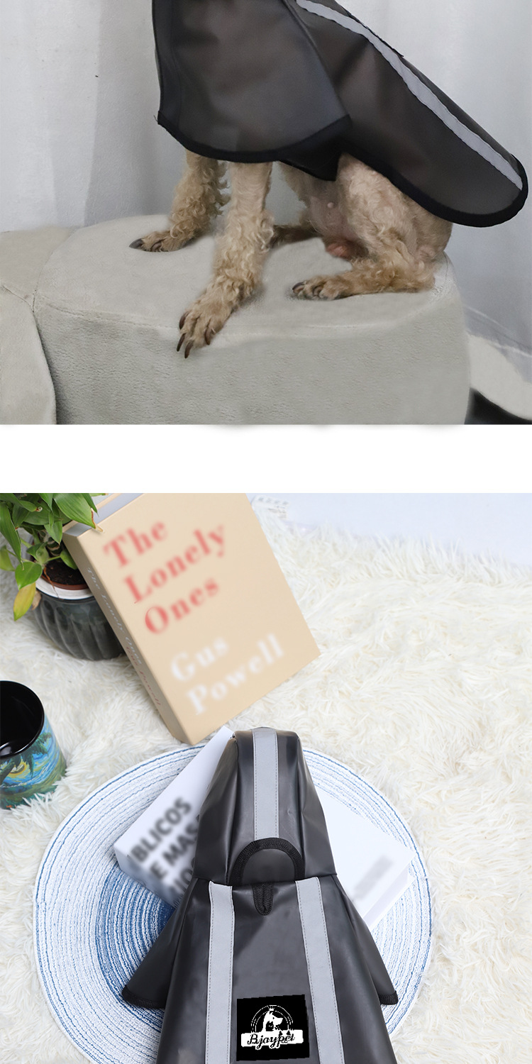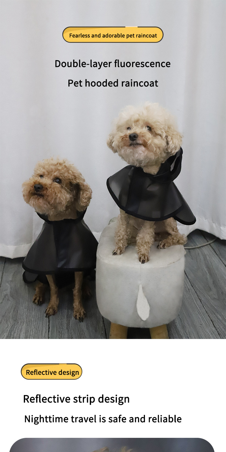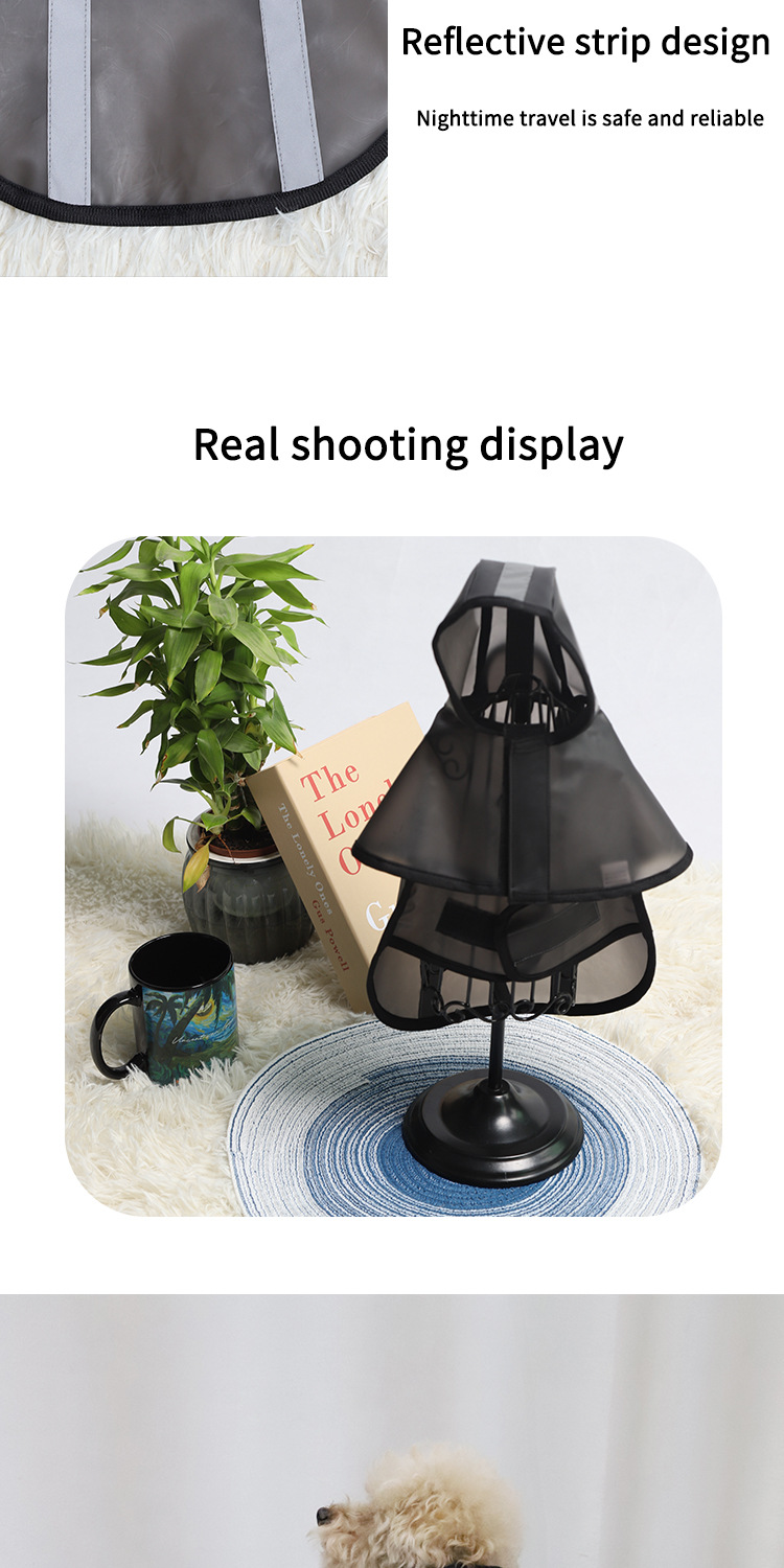 애완동물용 국경 간 비옷, 개용 특수 반사 비옷, 소형 및 중형견 견인 가능, 범용 애완동물 반투명 검정 비옷