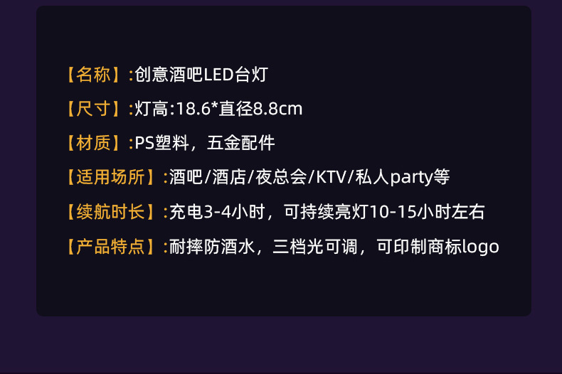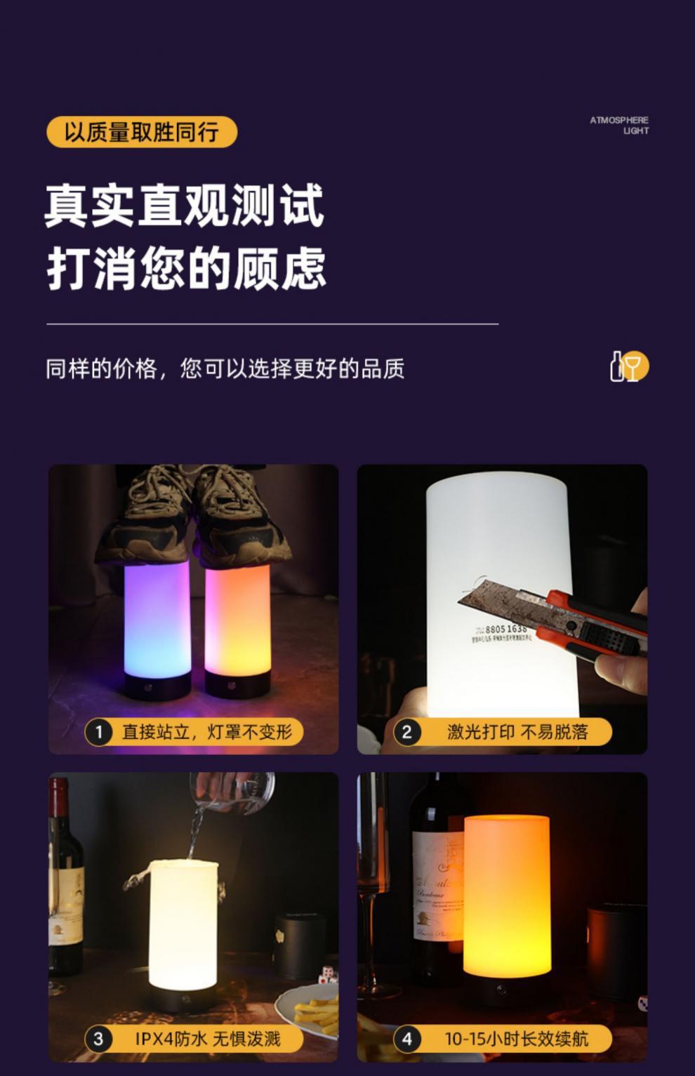 충전식 바 테이블 램프 야외 캠핑 크리 에이 티브 야시장 분위기 램프 야간 조명 클리어 바 스톨 테이블 램프 분위기 램프