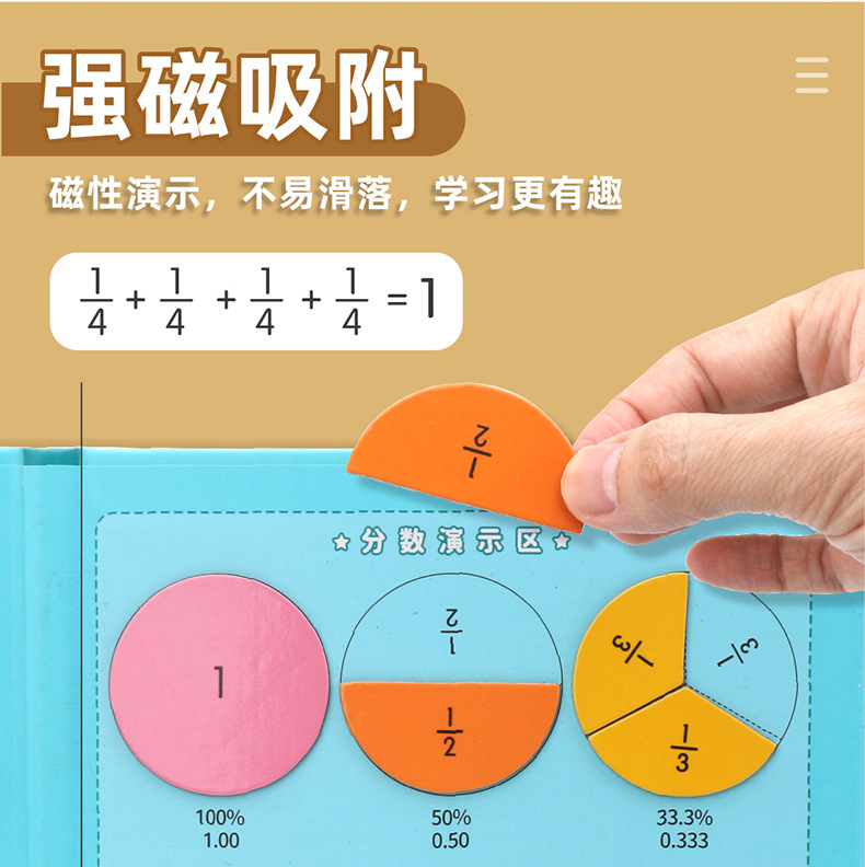 Duqi 자기 분수 학습 디스크 3~6학년 수학 교육 보조 자기 초등학교 덧셈 및 뺄셈 자기 시연자스토어 가기
