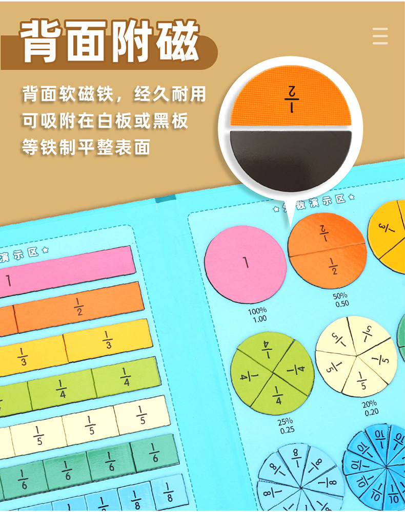 Duqi 자기 분수 학습 디스크 3~6학년 수학 교육 보조 자기 초등학교 덧셈 및 뺄셈 자기 시연자