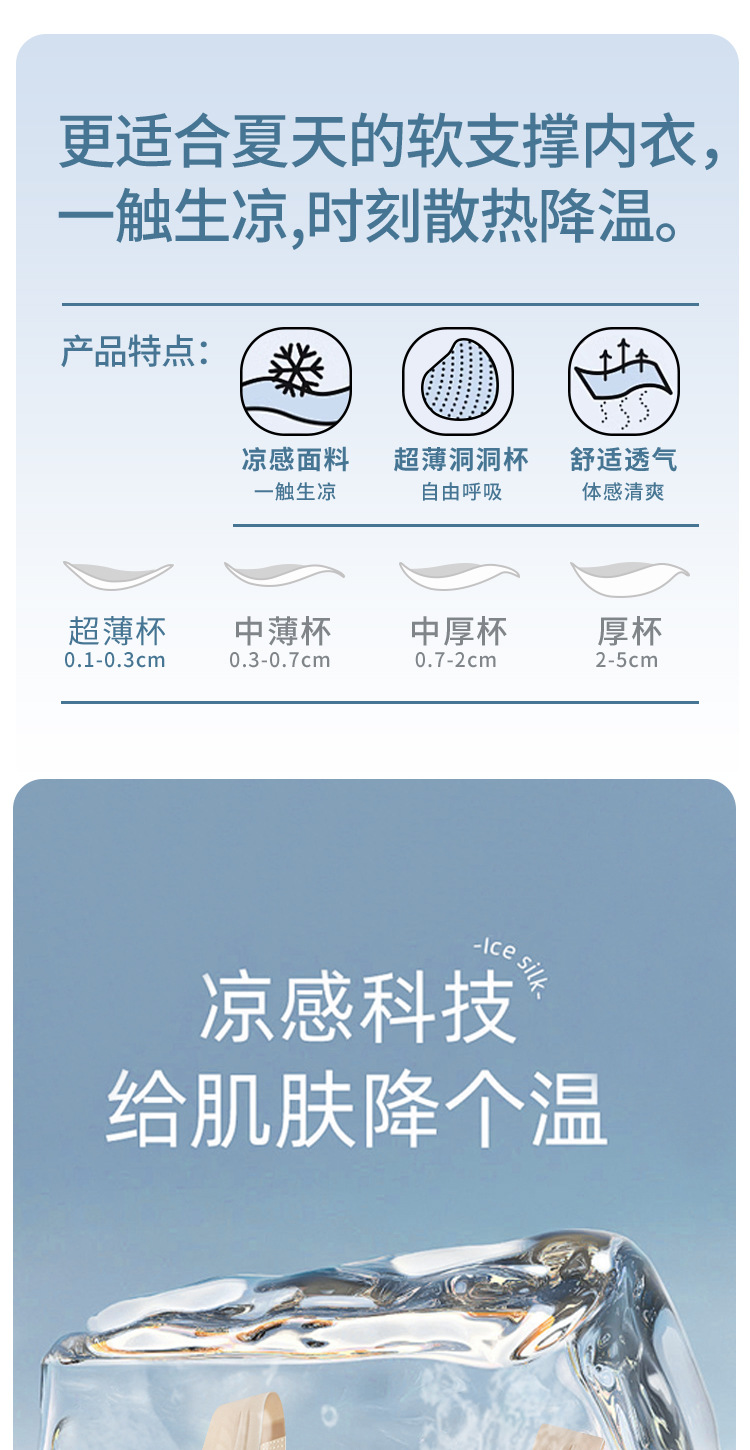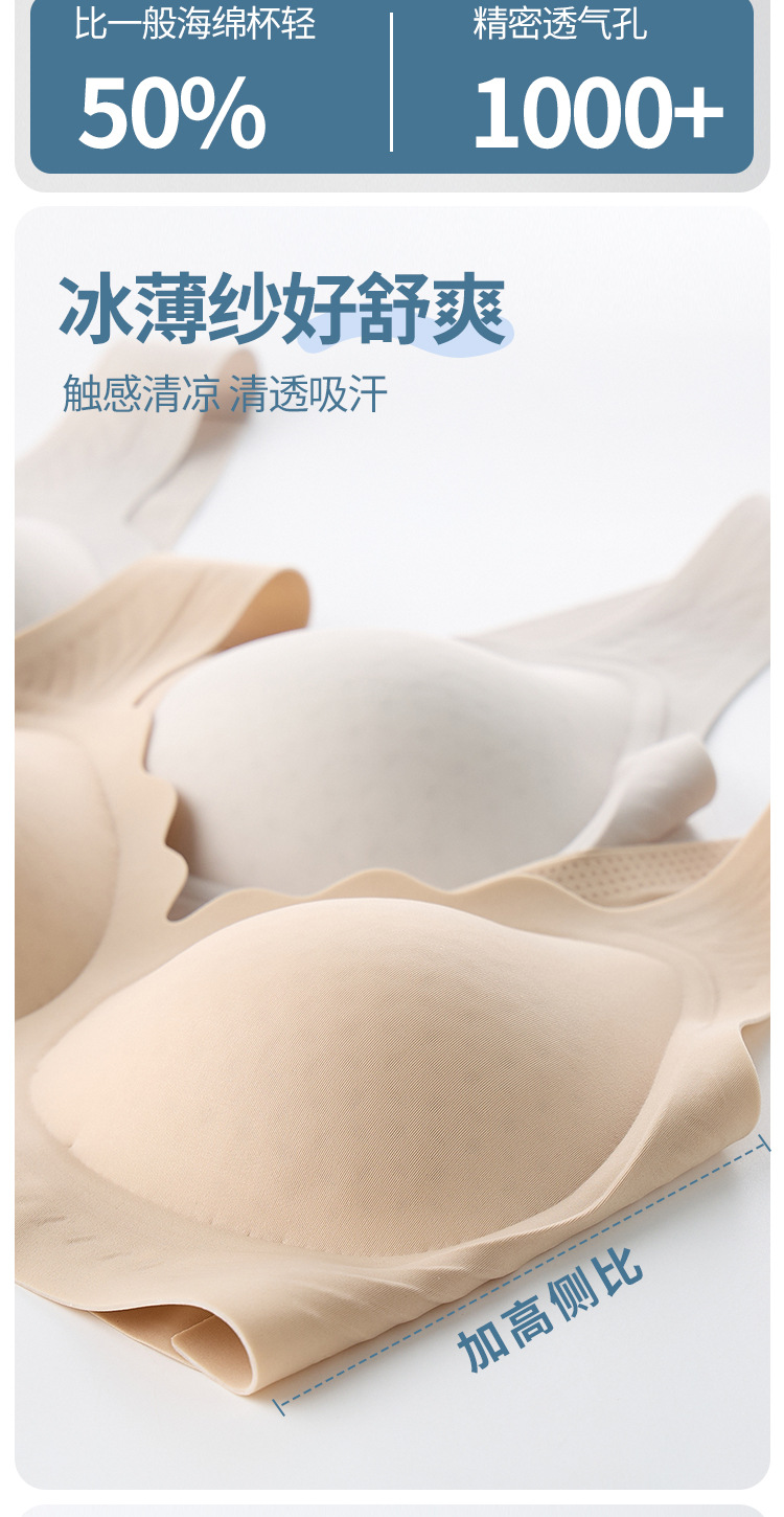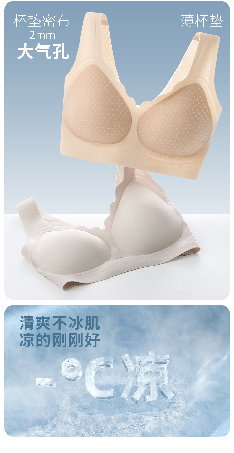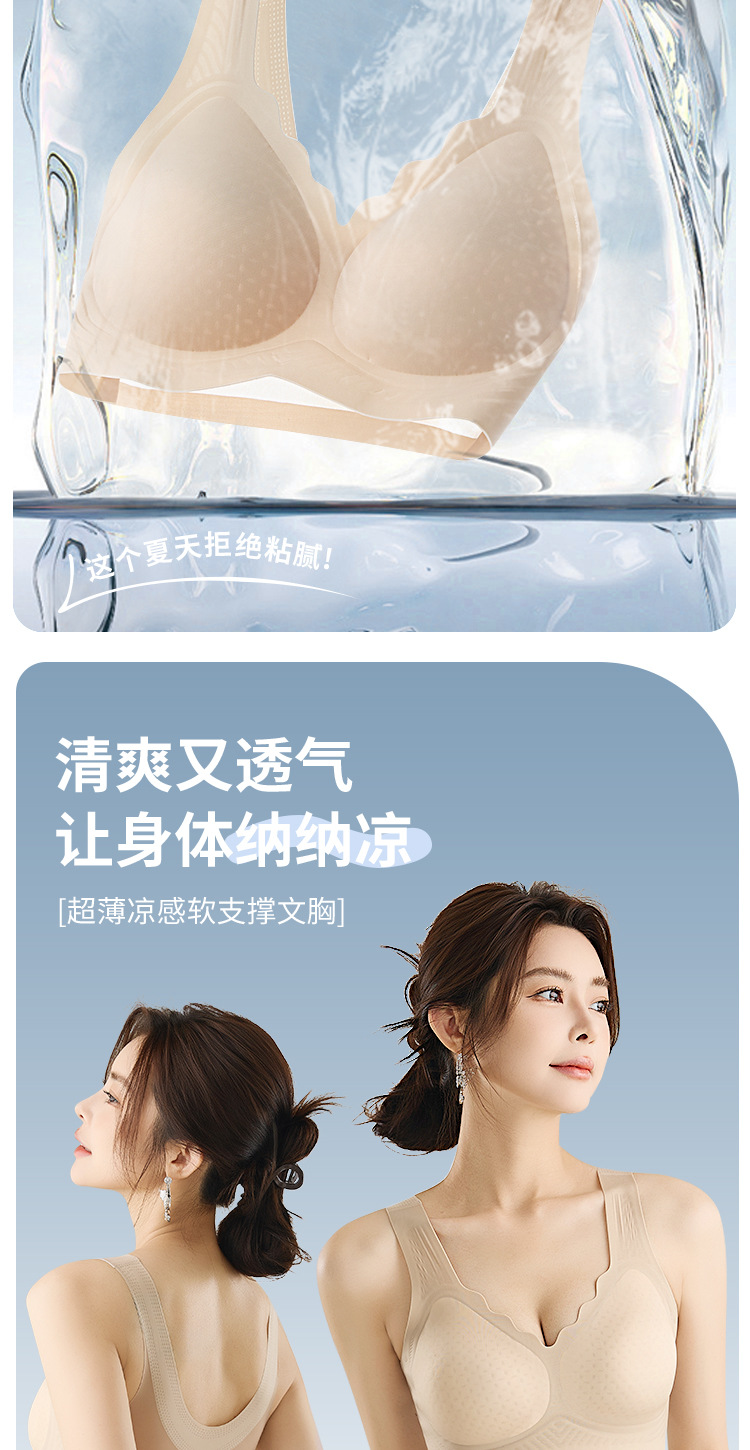큰 가슴을 가진 여성을 위한 아이스 실크 심리스 초박형 와이어 프리 고정 컵 속옷, 푸쉬업 조끼 스타일 유지 보수 통기성 브라스토어 가기