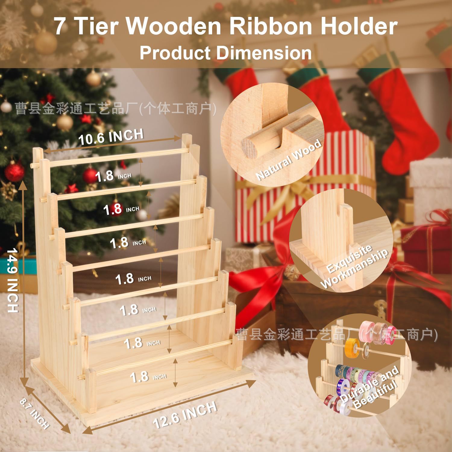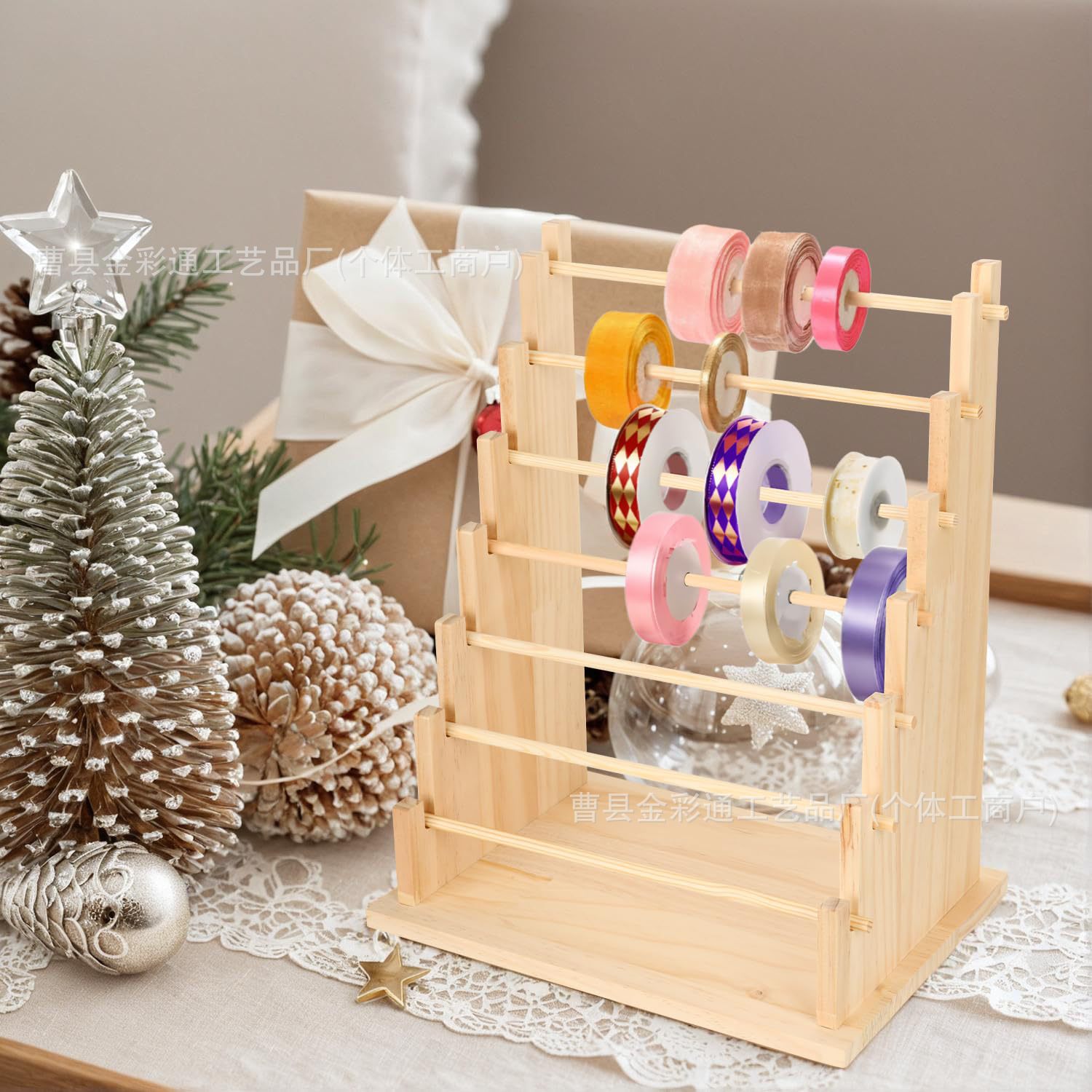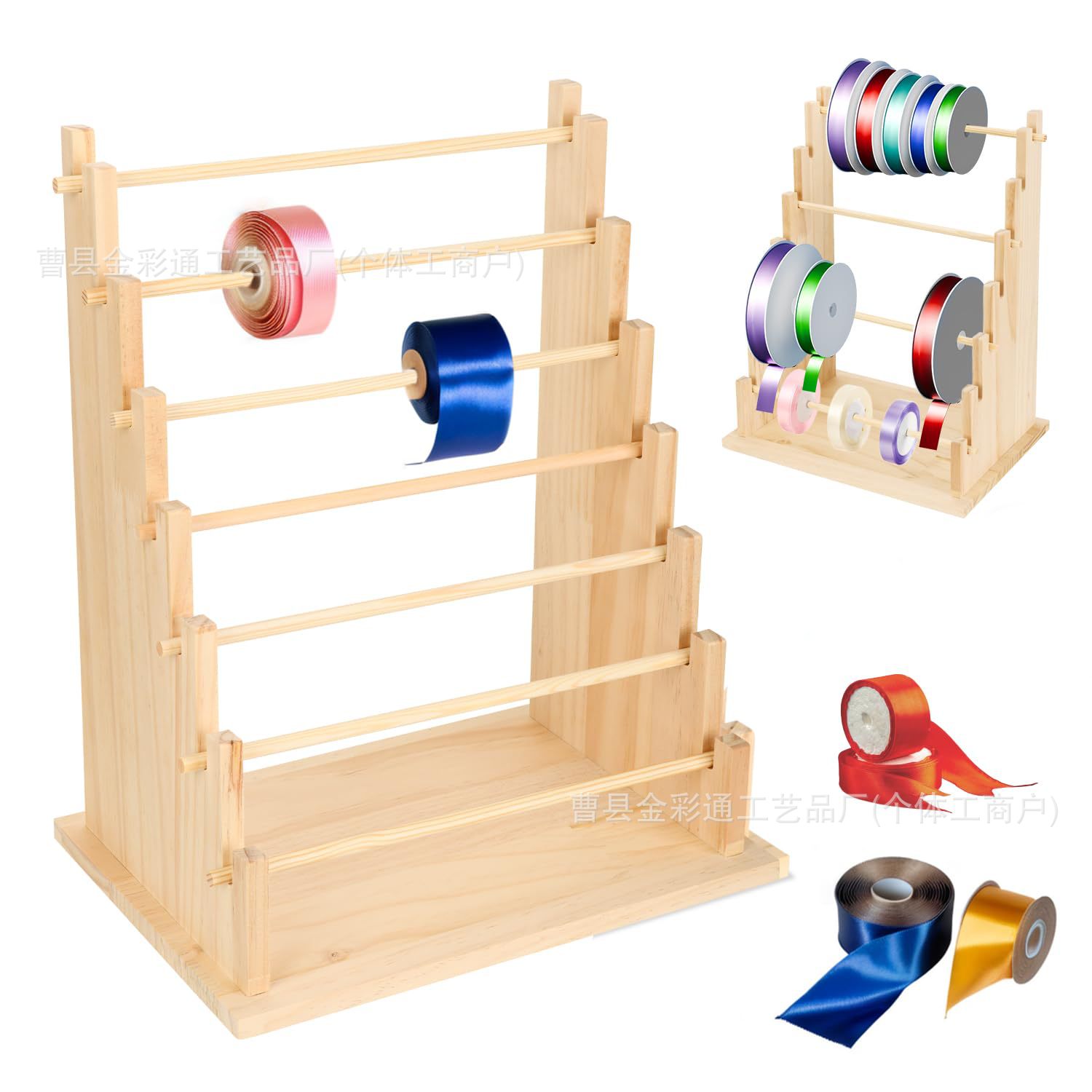 나무 리본 랙 다층 스풀 보관 랙 데스크탑 손으로 짠 양모 랙 단단한 나무 다층 리본 랩 랙