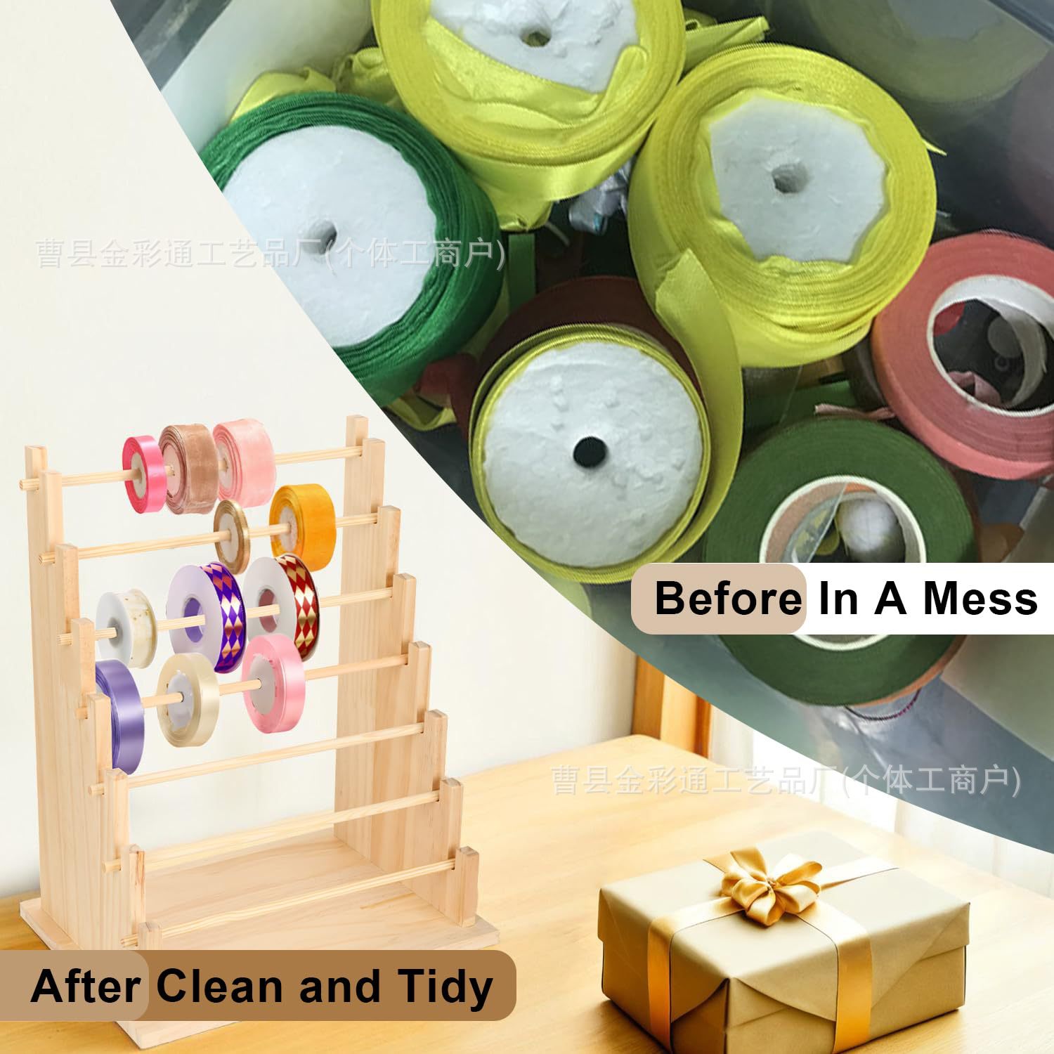 나무 리본 랙 다층 스풀 보관 랙 데스크탑 손으로 짠 양모 랙 단단한 나무 다층 리본 랩 랙스토어 가기