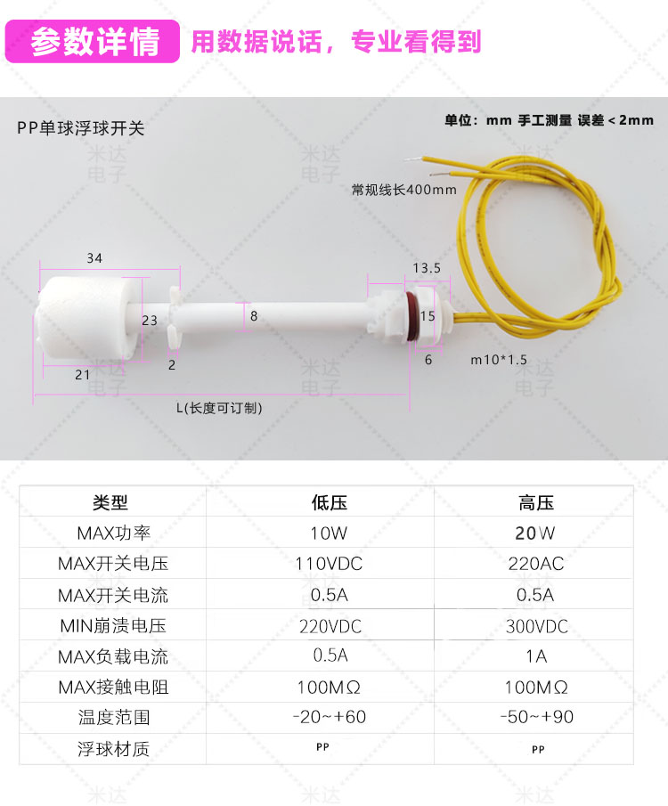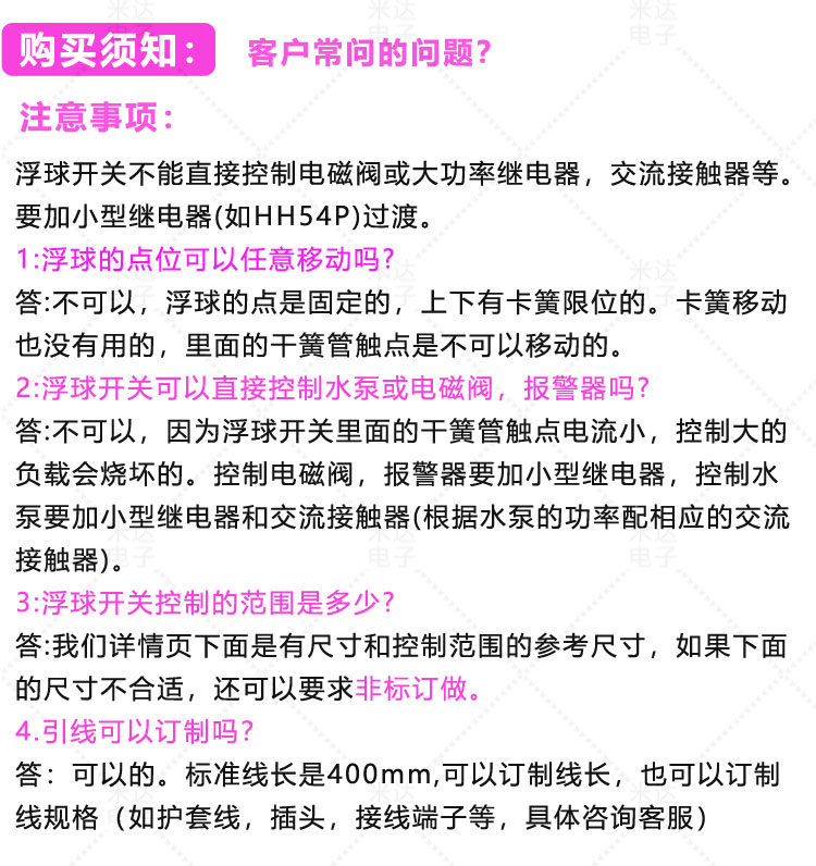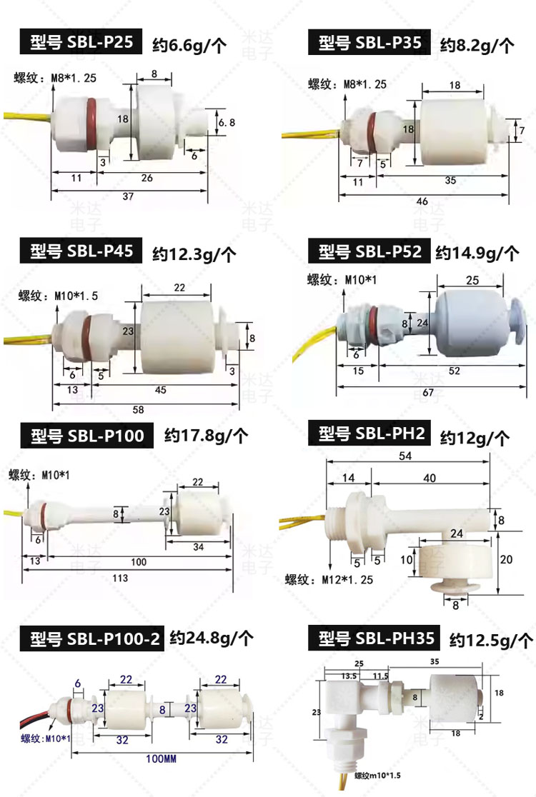 [재고 있음] PP 플라스틱 리드 스위치 정수기 소형 덕빌 측면 장착 플로트 스위치 수위 컨트롤러