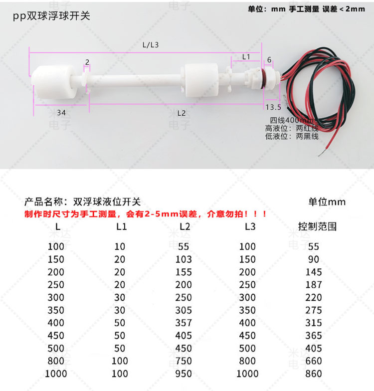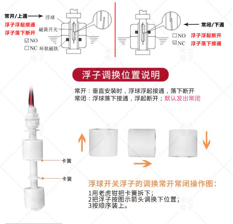 [재고 있음] PP 플라스틱 리드 스위치 정수기 소형 덕빌 측면 장착 플로트 스위치 수위 컨트롤러스토어 가기