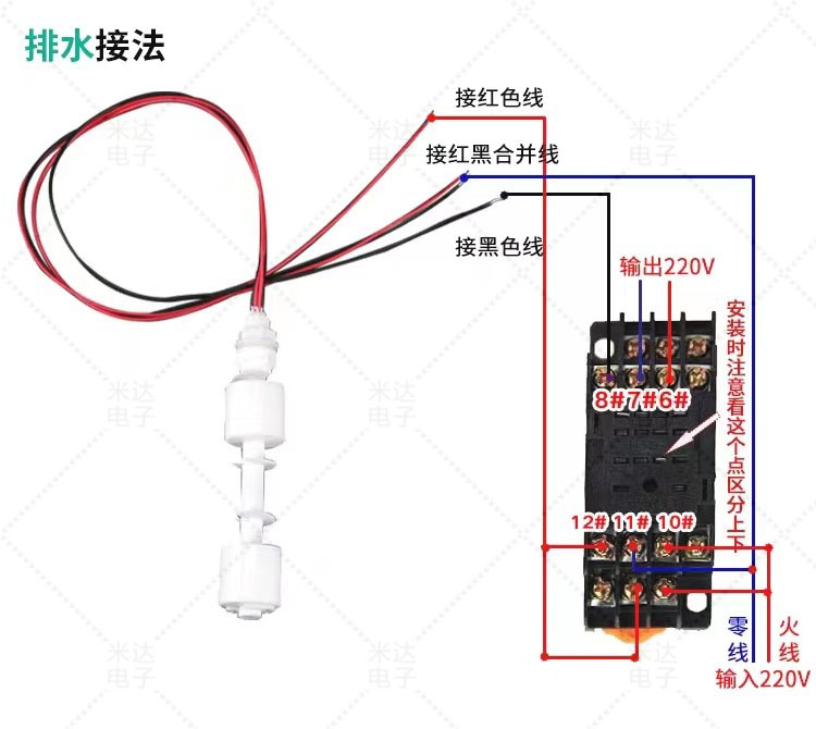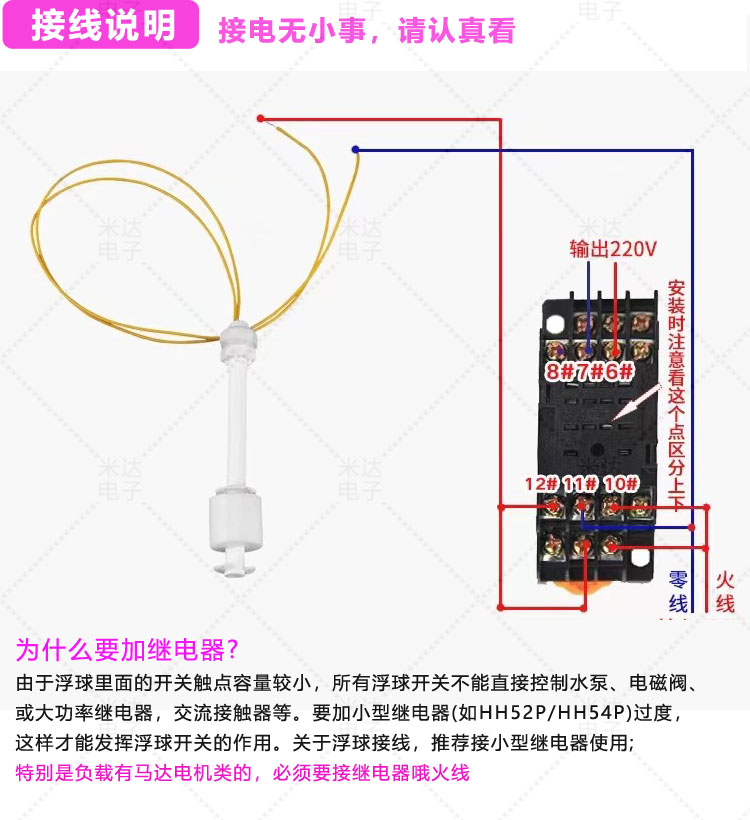 • 소형 릴레이와 함께 사용되는 AC220V 플로트 스위치