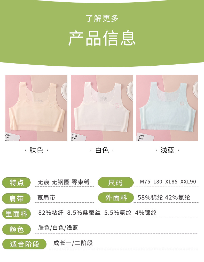 여아 발달 기간 속옷 7-16 세 중학생 및 고등학생 소녀 조끼 얼음 실크 통기성 구멍 방지 돌출 얇은 스타일스토어 가기