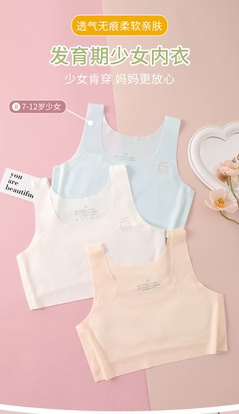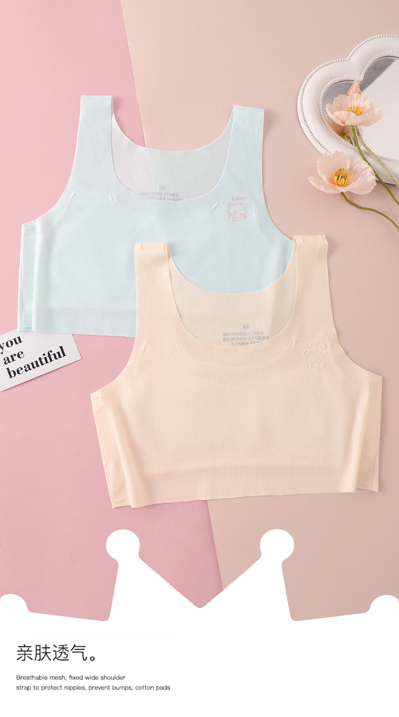 여아 발달 기간 속옷 7-16 세 중학생 및 고등학생 소녀 조끼 얼음 실크 통기성 구멍 방지 돌출 얇은 스타일
