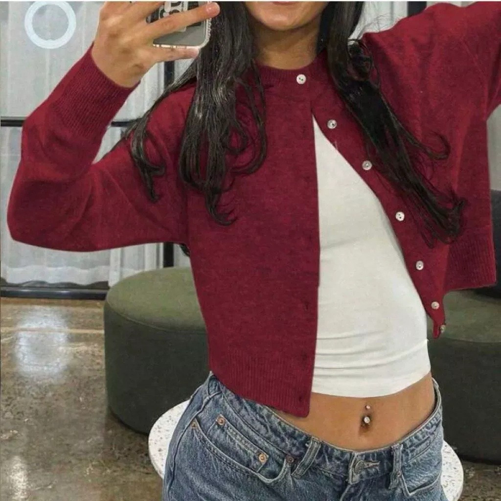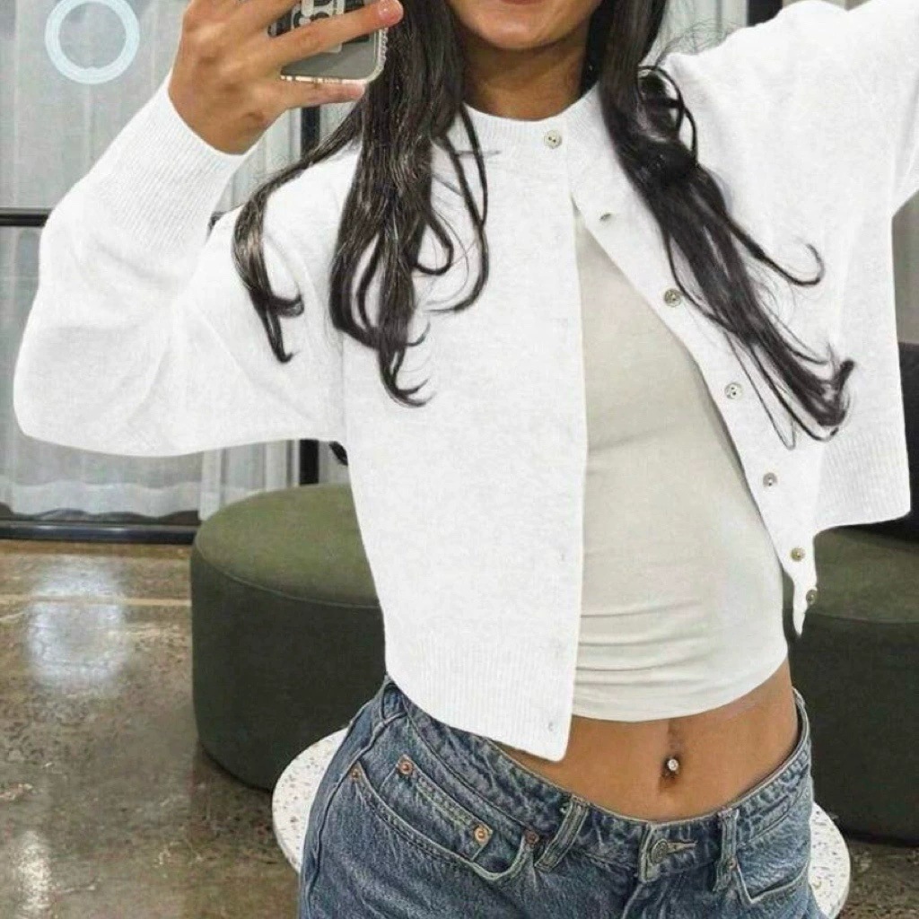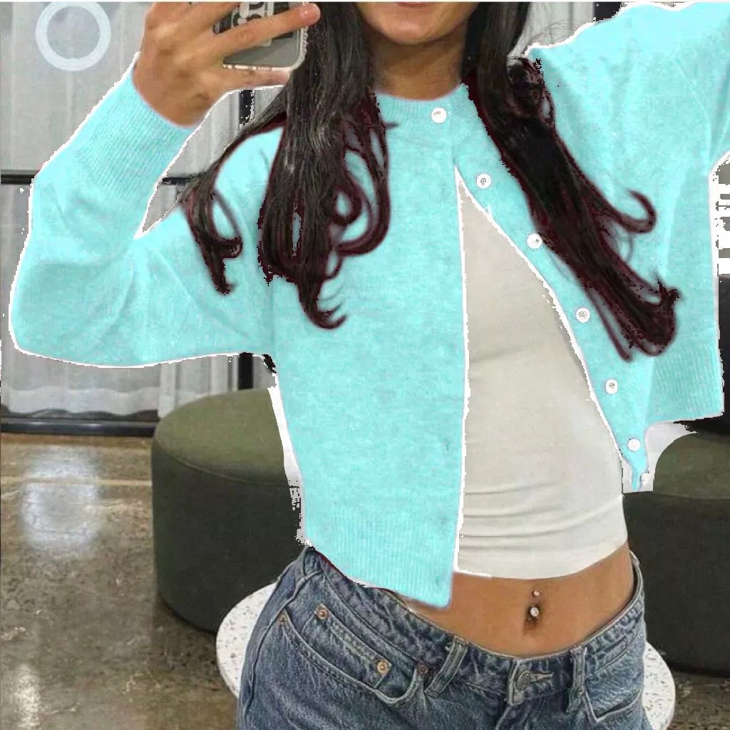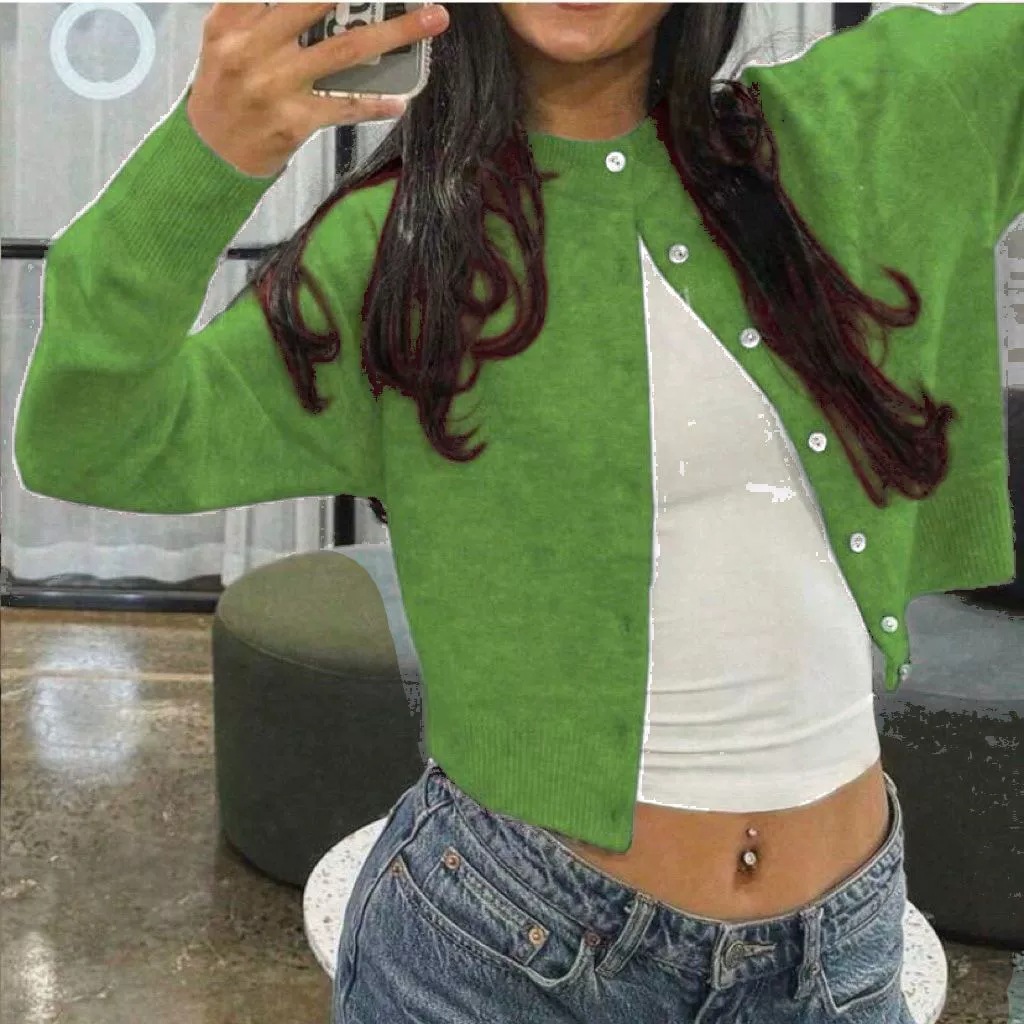 유럽과 미국의 국경 간 핫 세일 소프트 싱글 브레스트 라운드 넥 니트 카디건 여성 솔리드 컬러 스웨터 재킷 인 스타일 탑 트렌디스토어 가기
