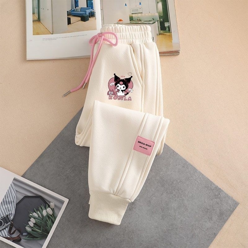 여아 봄, 가을 바지 새로운 스타일 쿠로미 스웨트 팬츠 루즈한 큰 어린이 가을, 겨울 캐주얼 바지 스포츠 바지 플러스 벨벳 바지