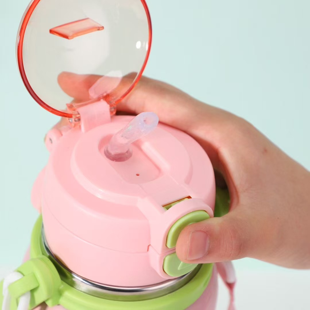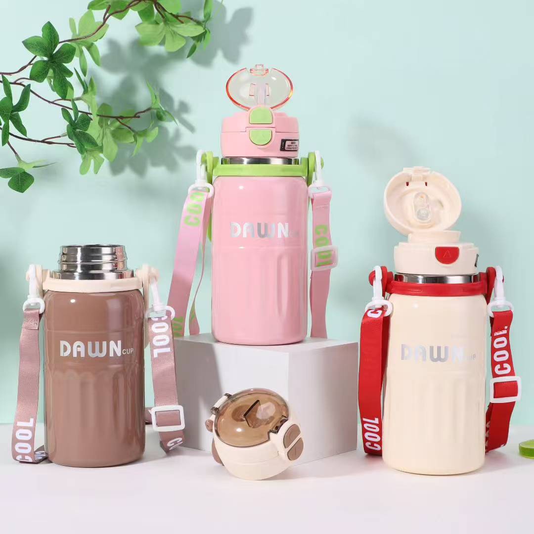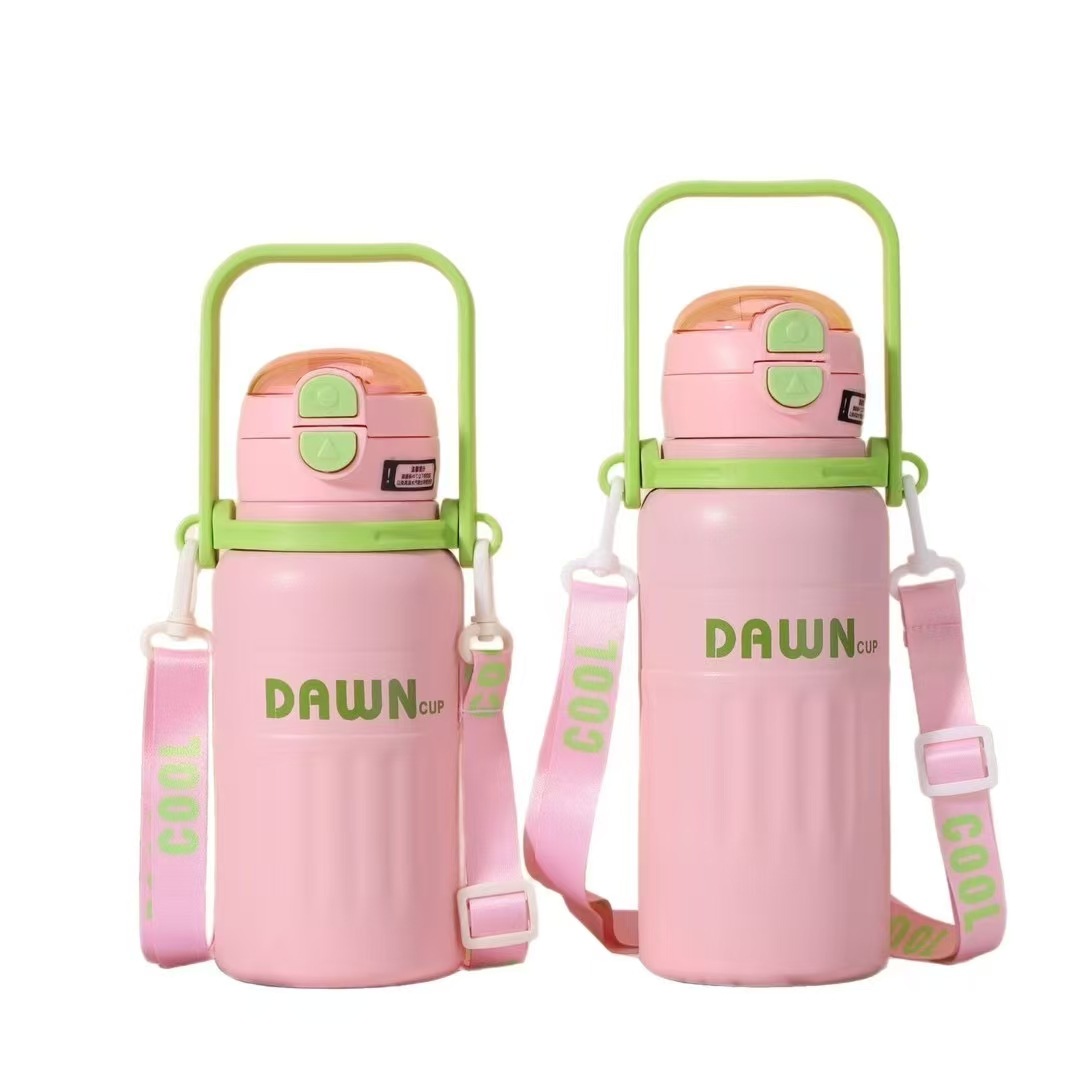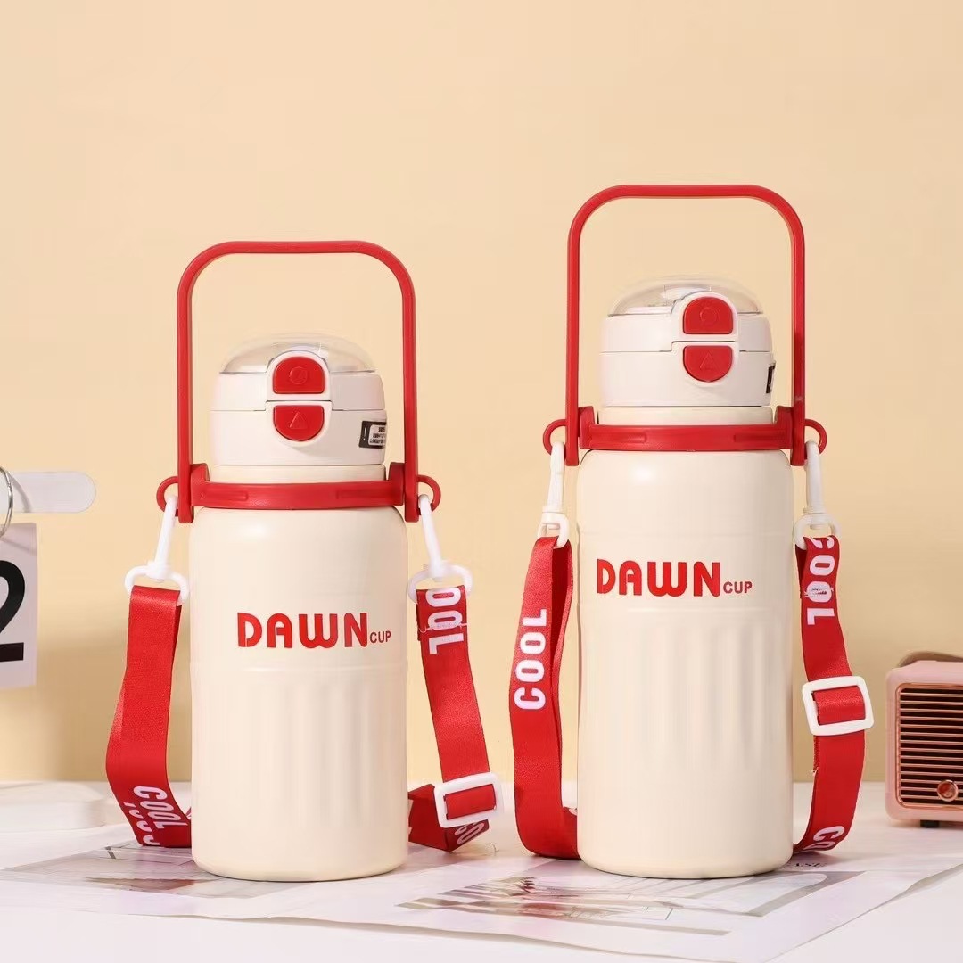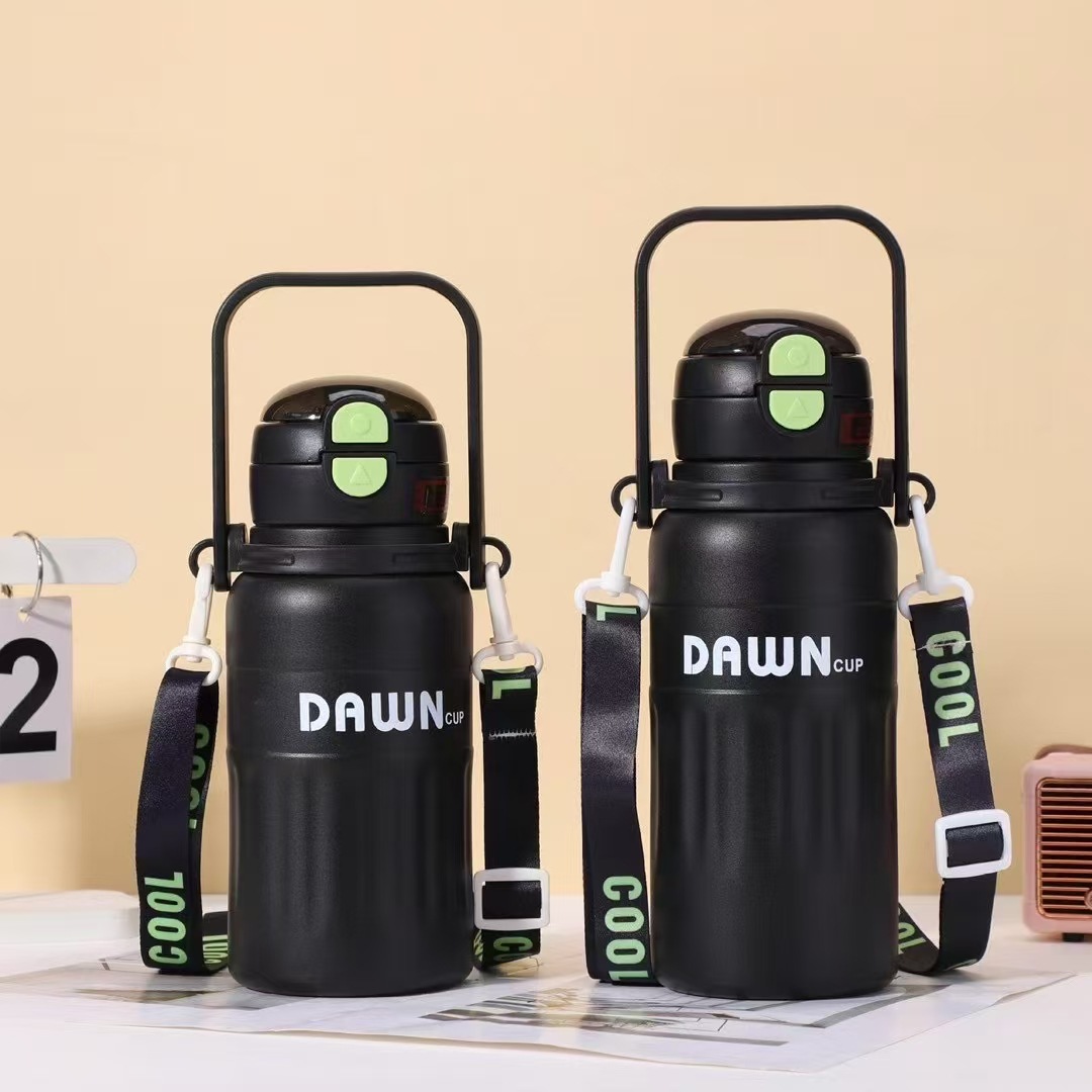 새로운 316 스테인레스 스틸 대용량 보온병 컵 스트랩 핸들 더블 드링킹 바운스 밀짚 야외 등산 주전자