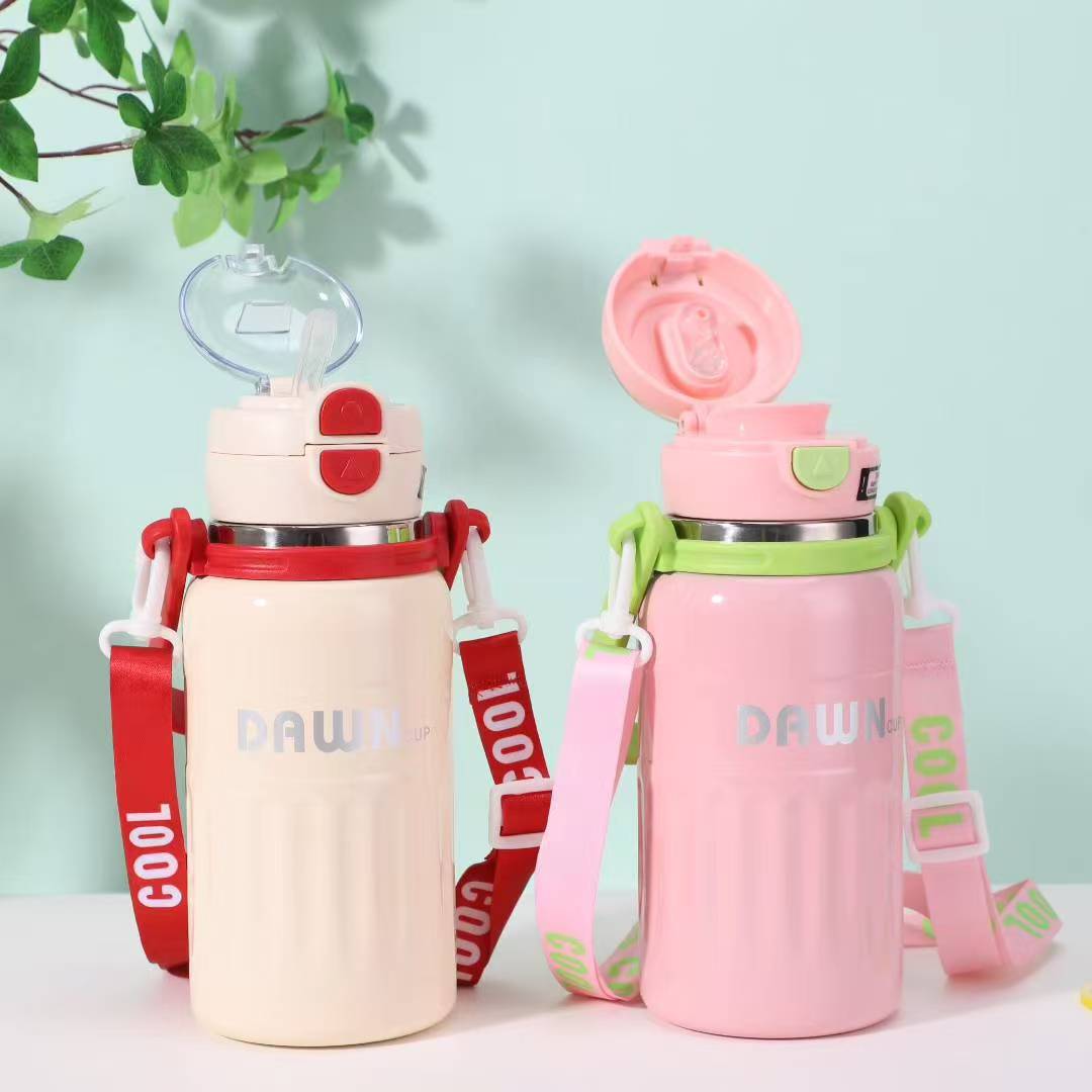 새로운 316 스테인레스 스틸 대용량 보온병 컵 스트랩 핸들 더블 드링킹 바운스 밀짚 야외 등산 주전자스토어 가기