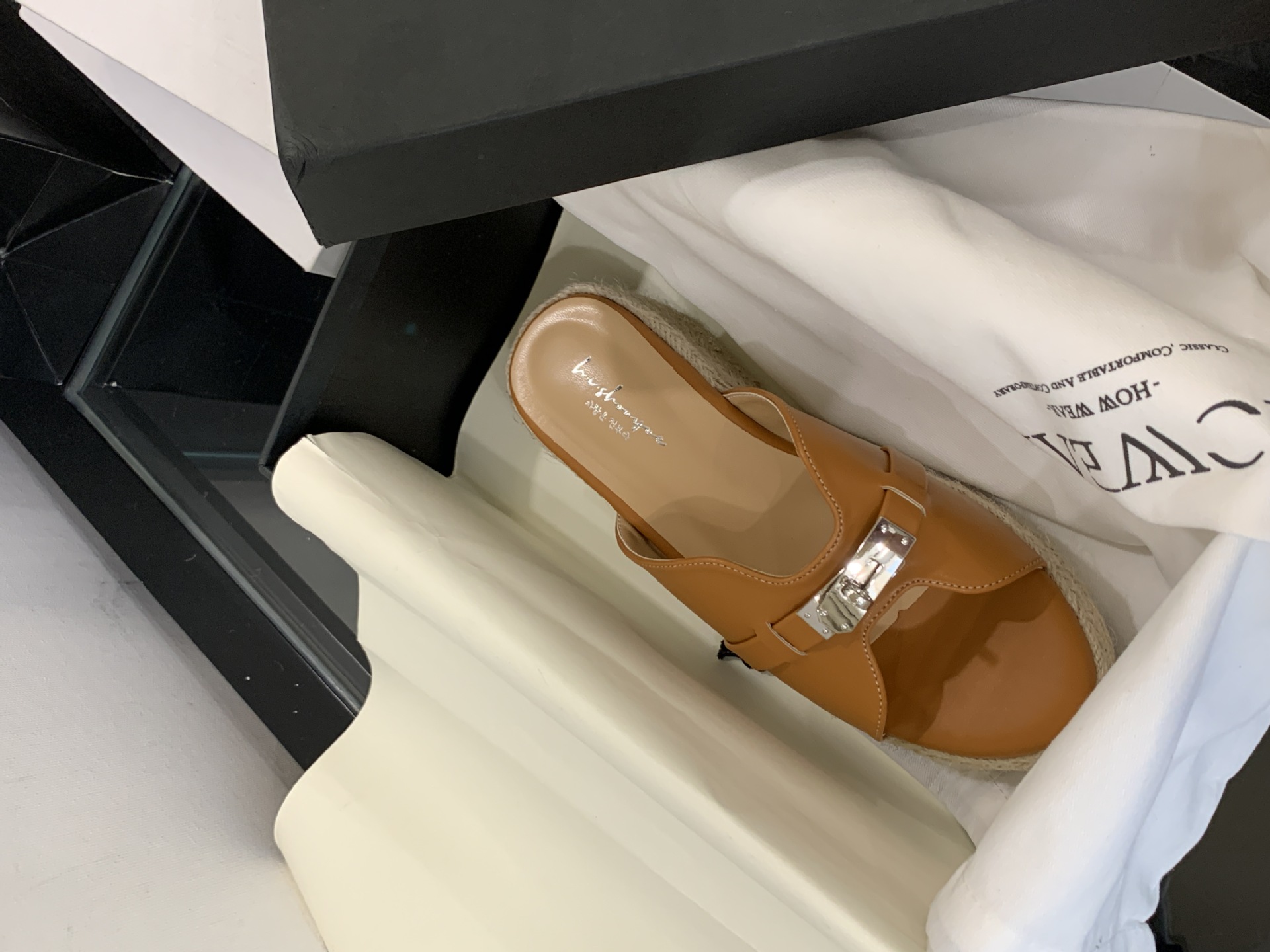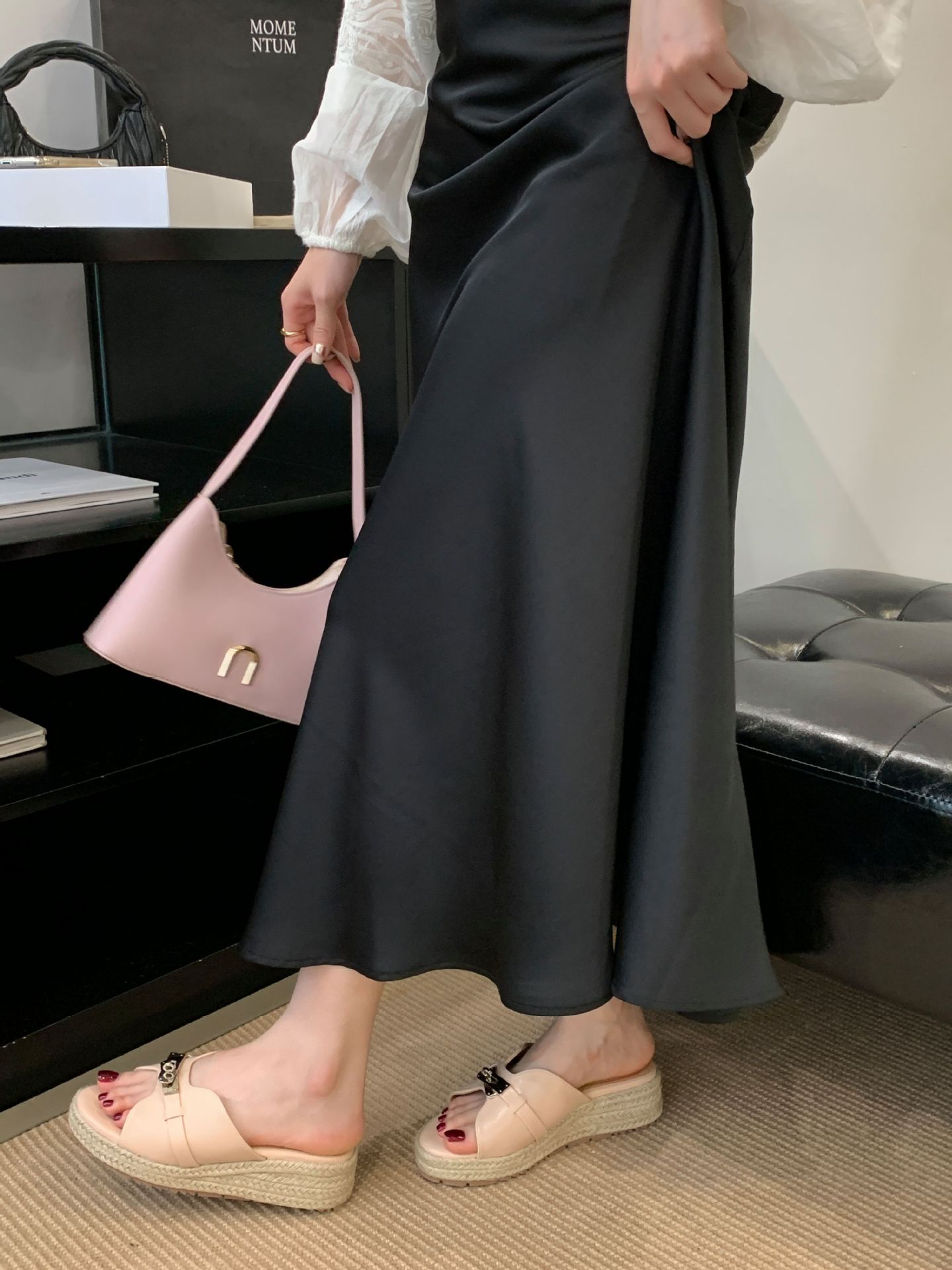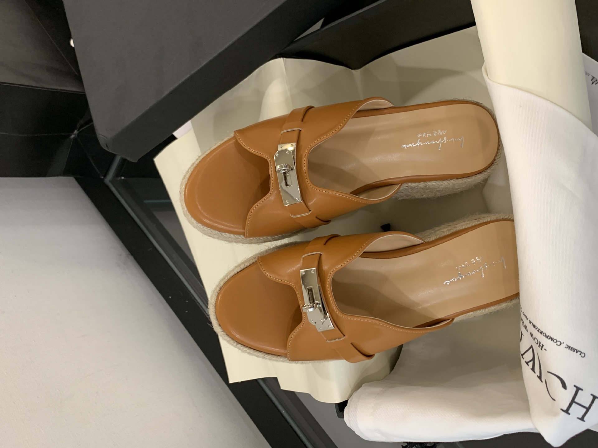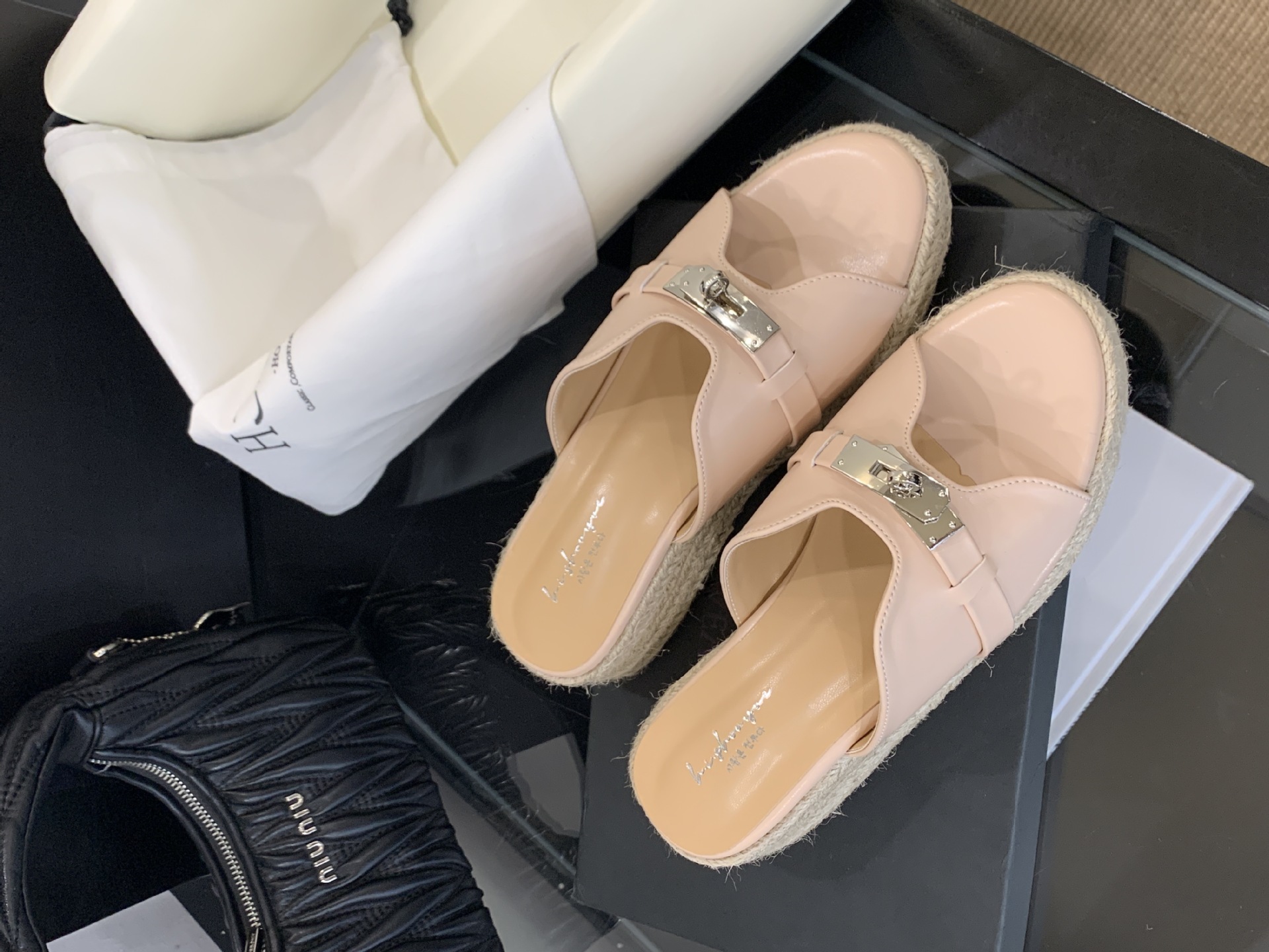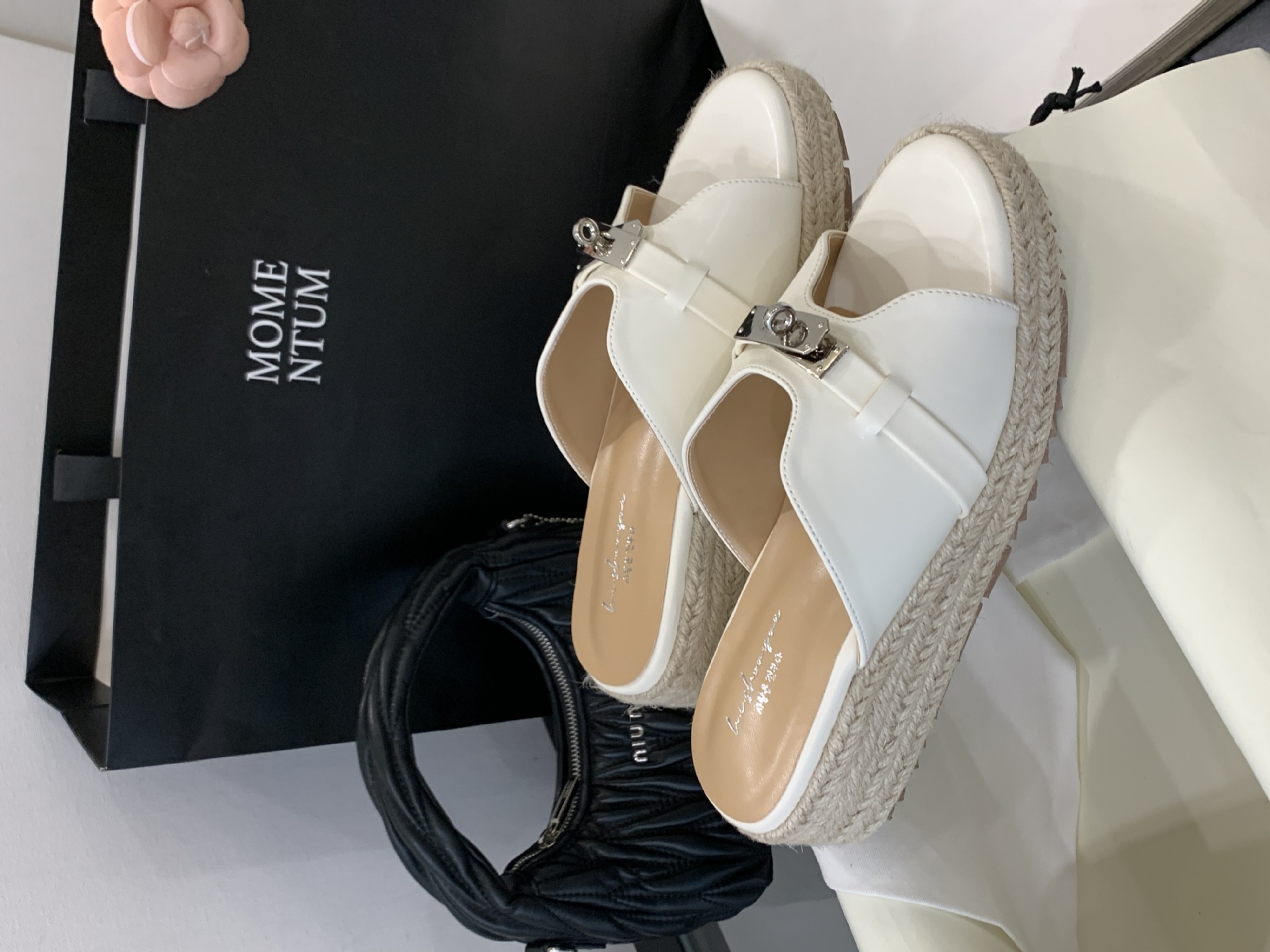 영국식 잠금 버클 밀짚 웨지 2025 여름 두꺼운 밑창 중간 굽 둥근 발가락 오픈 토우 여성용 슬리퍼스토어 가기