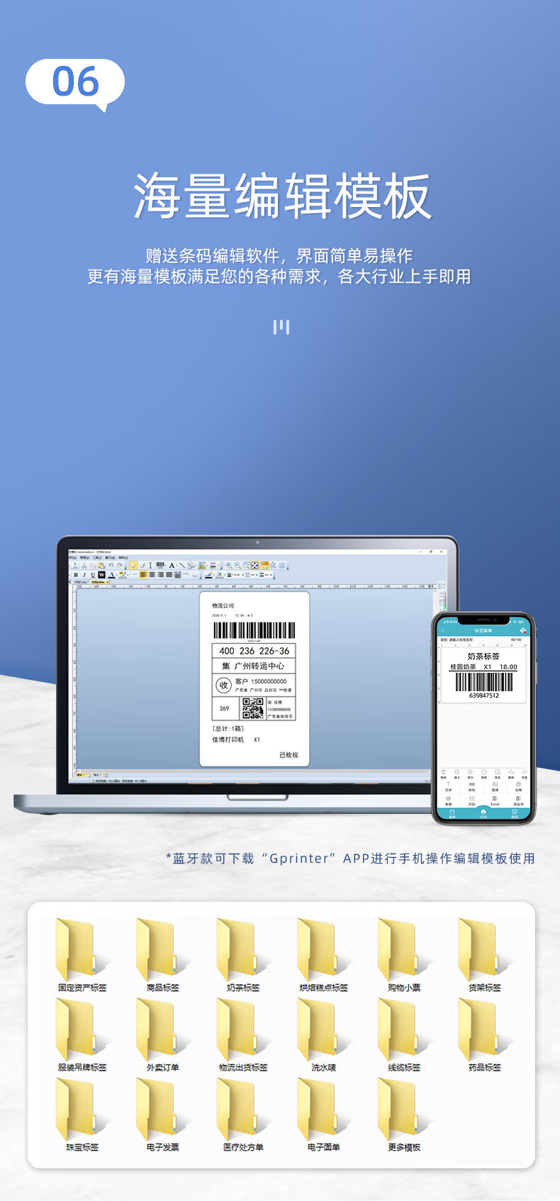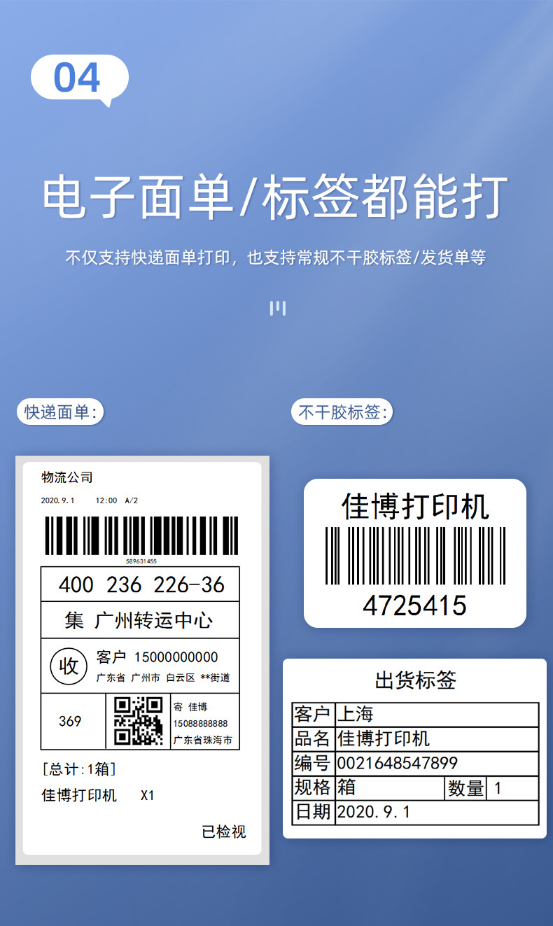 Jiabo 열 라벨 프린터 Bluetooth 전자 라벨 익스프레스 자체 접착 열 바코드 라벨 프린터스토어 가기