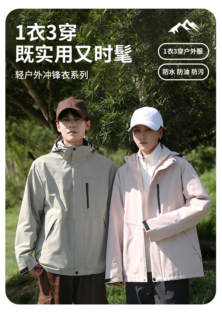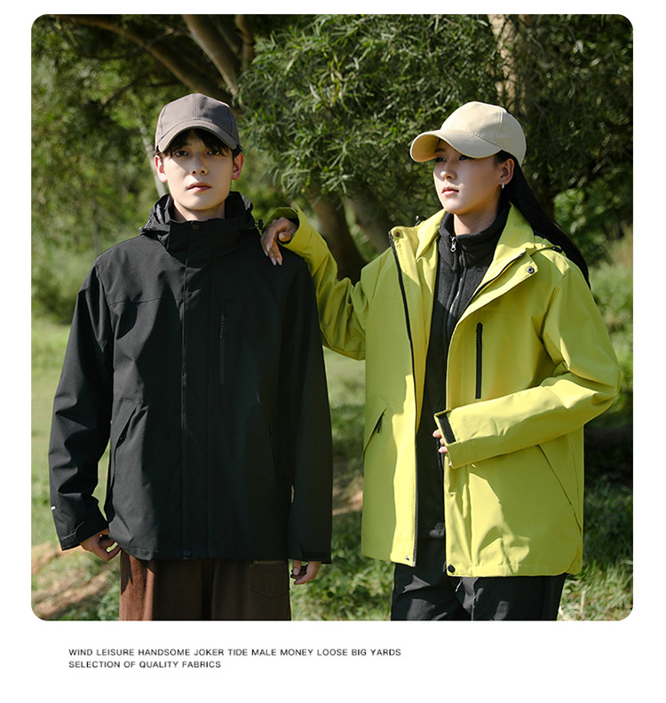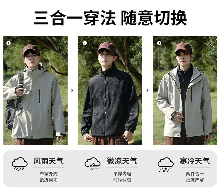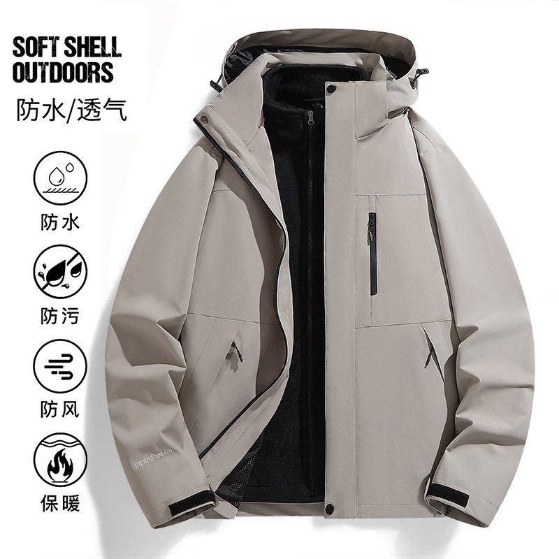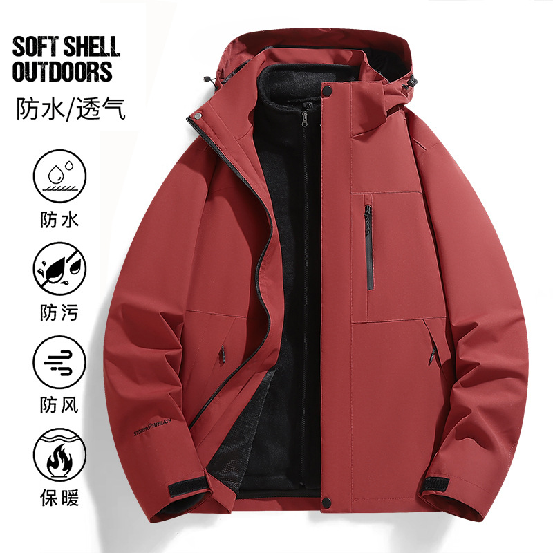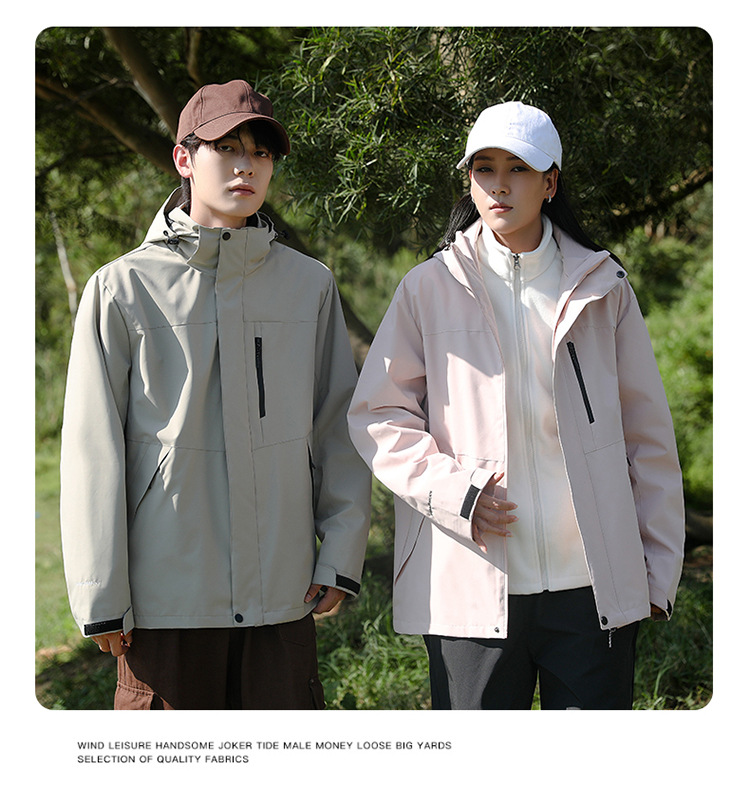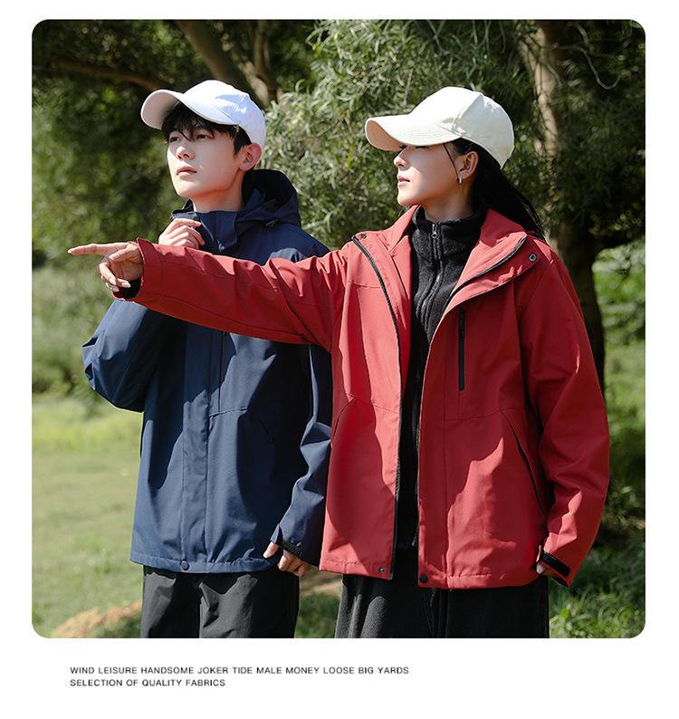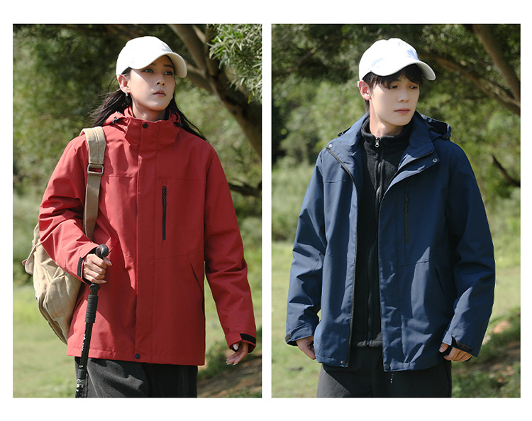 아웃도어 재킷, 3-in-1 방풍 커플 스타일, 두꺼운 등산 재킷, 남녀 작업복, 로고 인쇄 가능