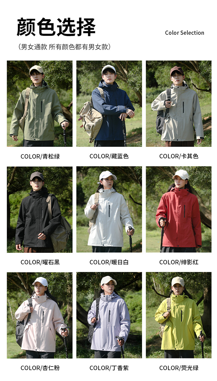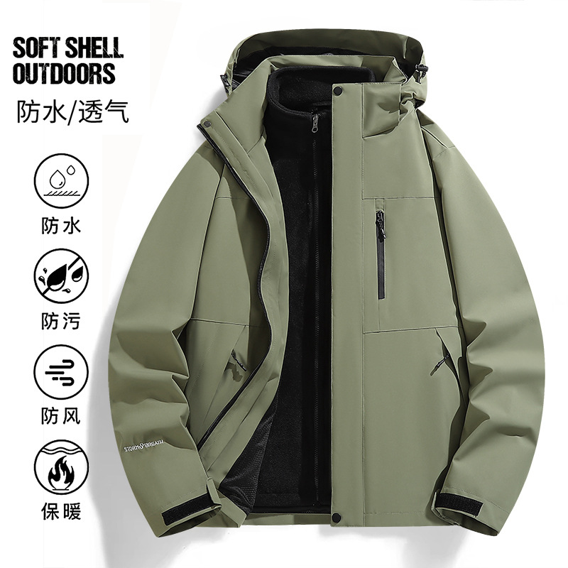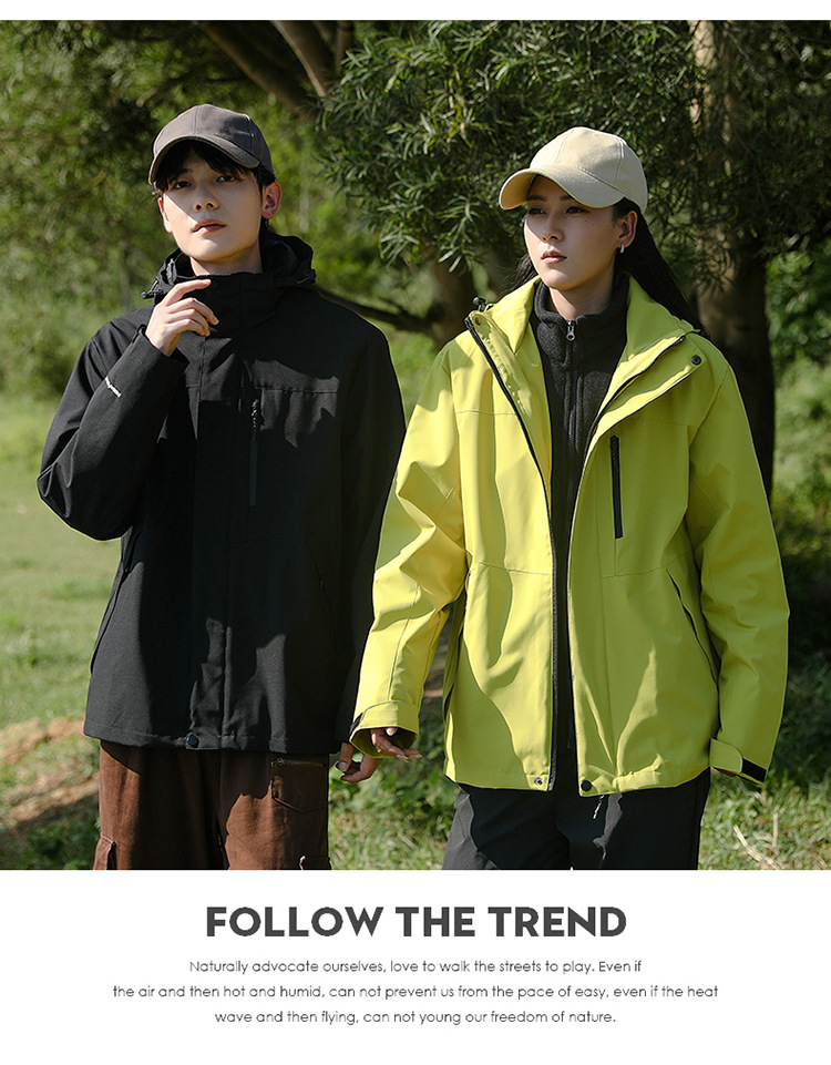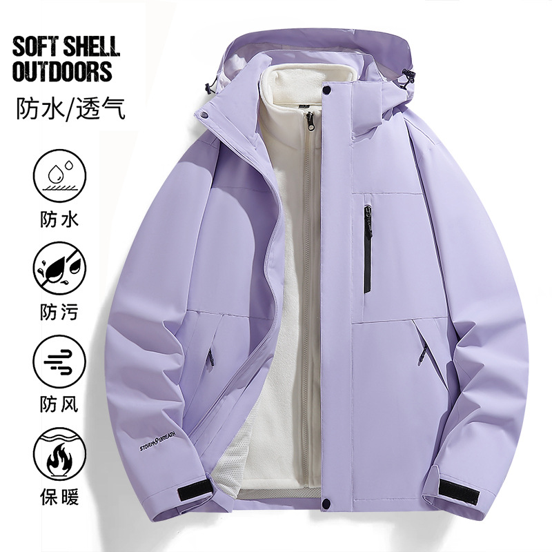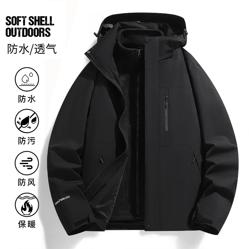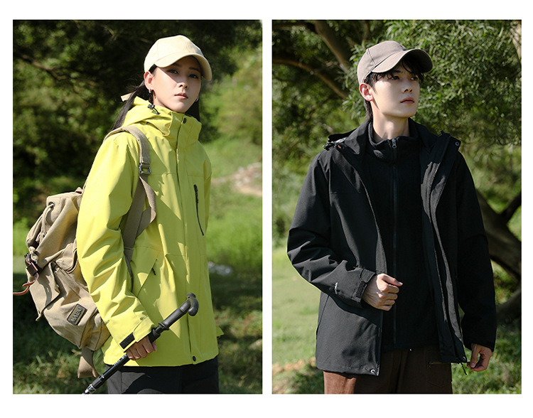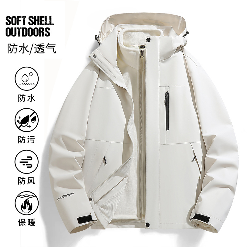 아웃도어 재킷, 3-in-1 방풍 커플 스타일, 두꺼운 등산 재킷, 남녀 작업복, 로고 인쇄 가능