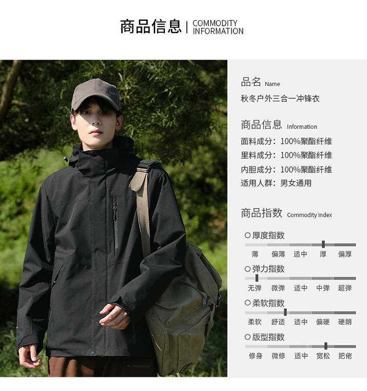 아웃도어 재킷, 3-in-1 방풍 커플 스타일, 두꺼운 등산 재킷, 남녀 작업복, 로고 인쇄 가능스토어 가기