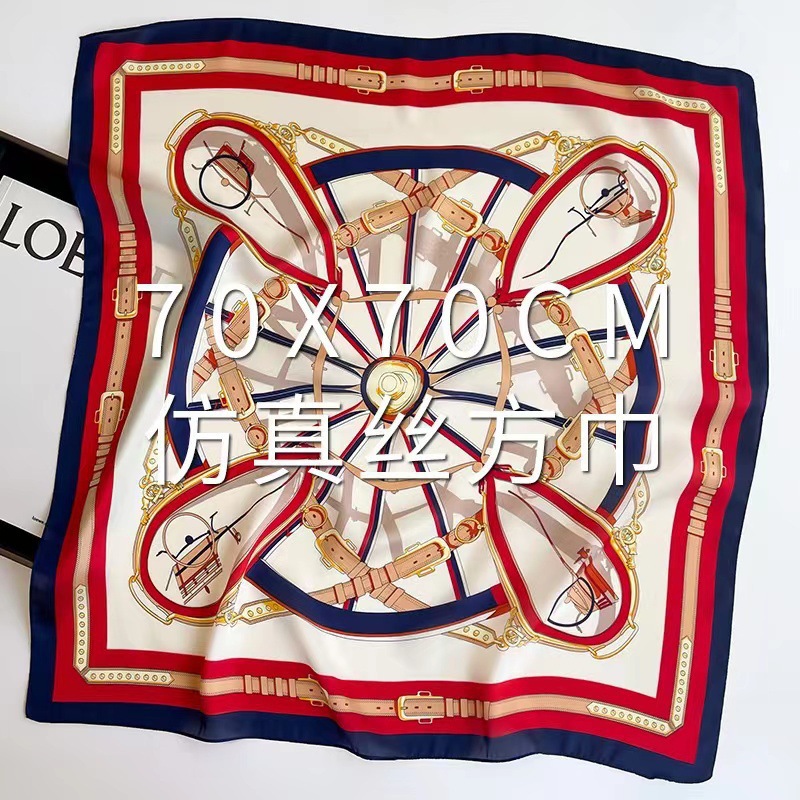 2025 봄과 가을 새로운 스타일 70 작은 사각형 스카프 입체 문자 인쇄 비즈니스 스카프 시뮬레이션 실크 스카프 도매