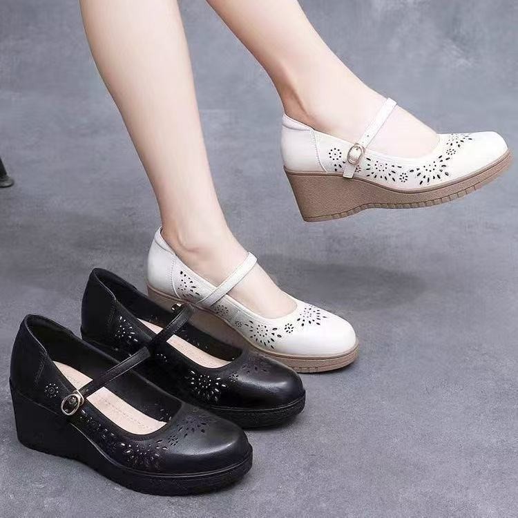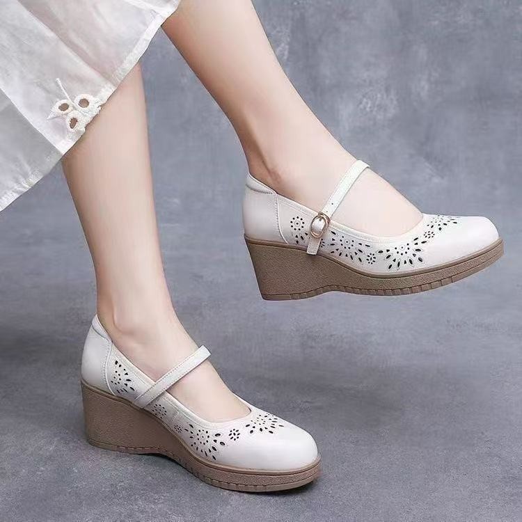대외 무역 도매 웨지 힐 로퍼 패션 복고풍 중공 샌들 2025 여름 새 스타일 엄마 신발스토어 가기