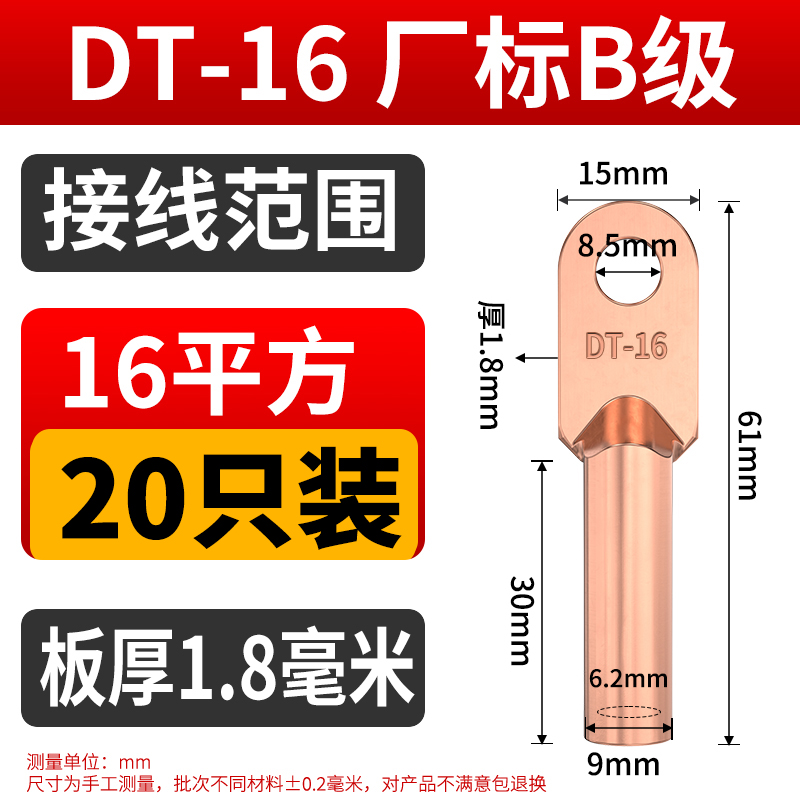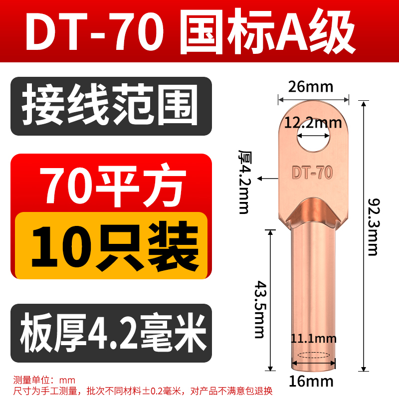 DT 구리 노즈 구리 커넥터 와이어 노즈 케이블 와이어 구리 와이어 이어 국가 표준 주석 도금 6 ~ 630 평방 구리 배선 터미널스토어 가기