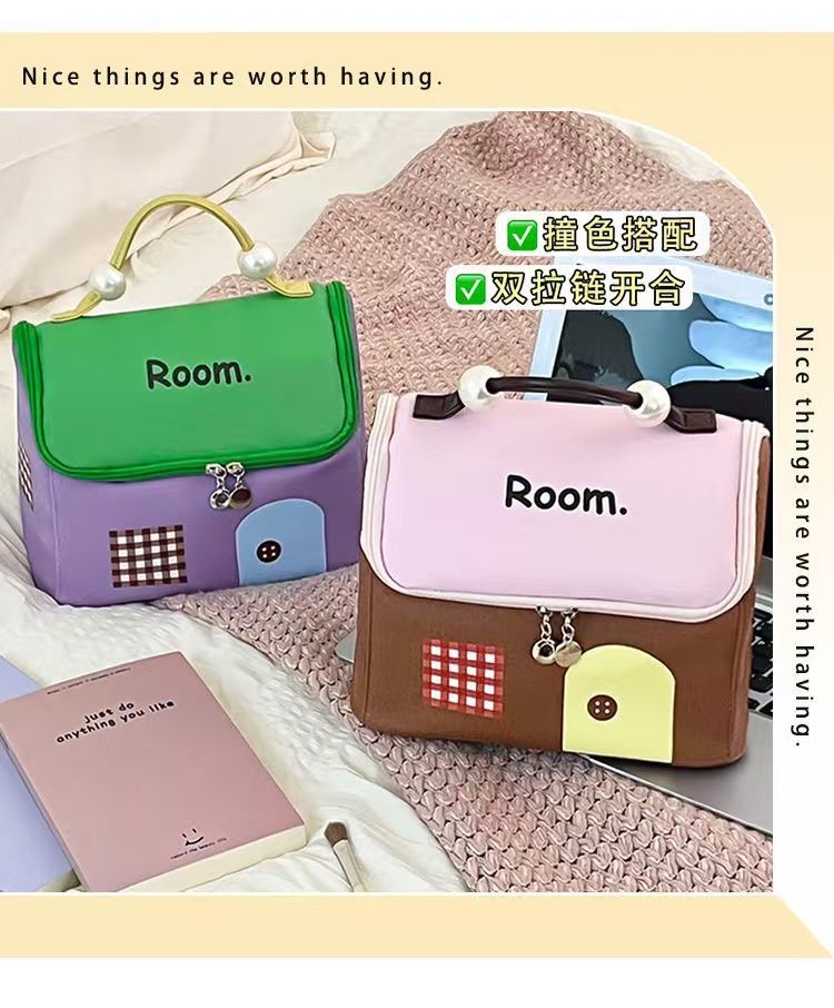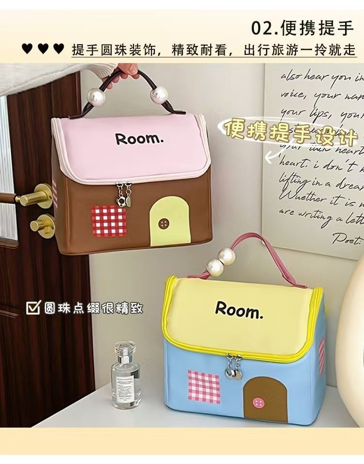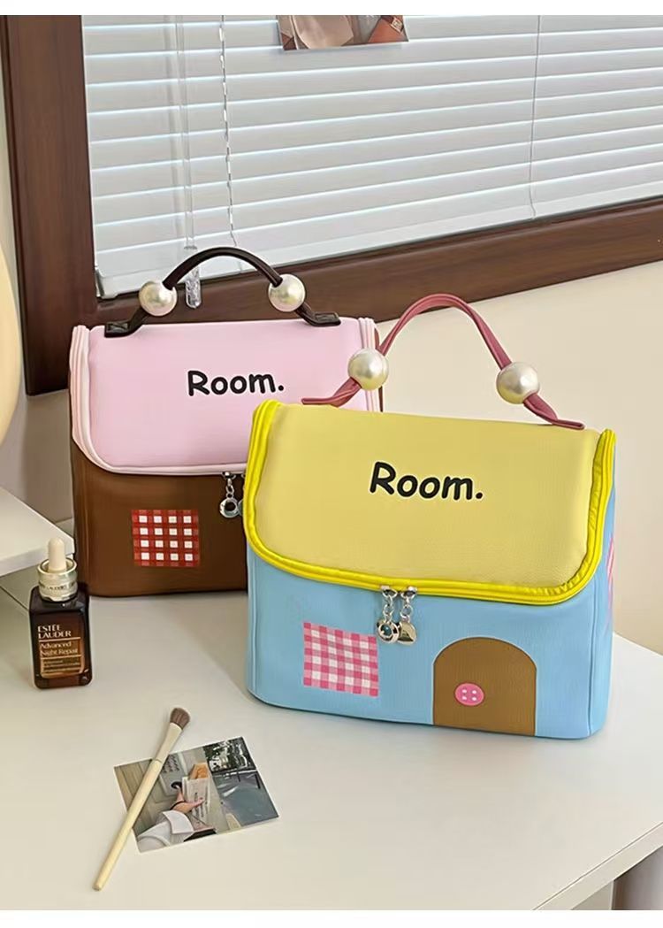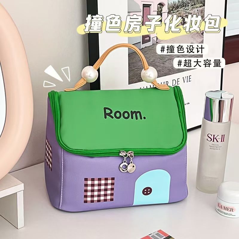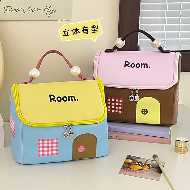 2025 새로운 귀여운 집 휴대용 여행 세면 용품 휴대용 대용량 파티션 보관 가방 여성을위한 화장품 가방스토어 가기