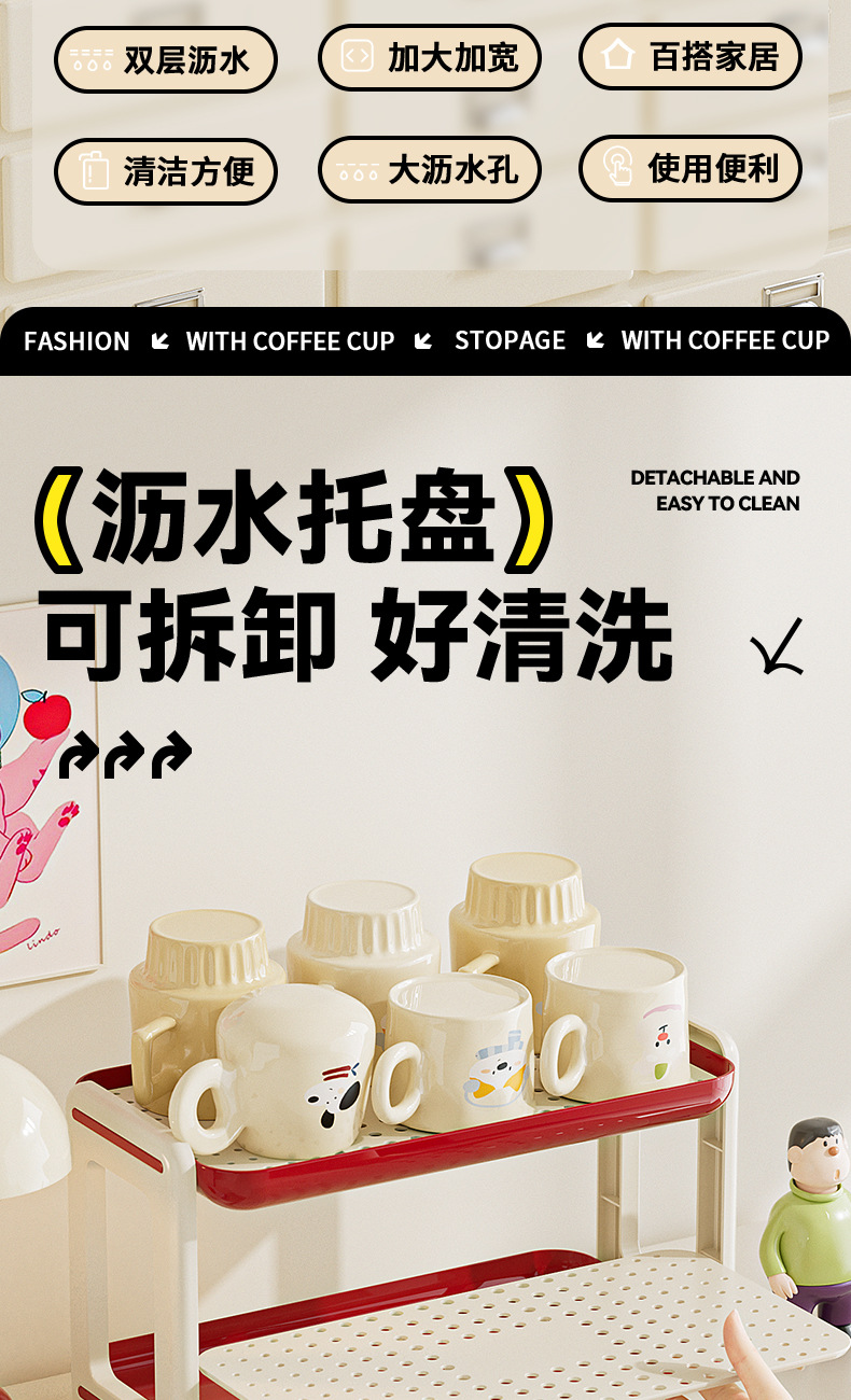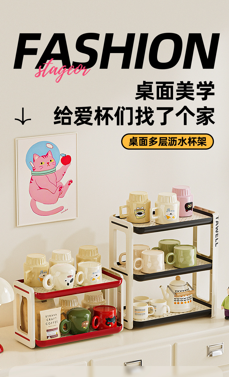 컵 보관함 데스크탑 워터 컵 머그잔 커피 티 컵 보관함 홈 다이닝 테이블 다층 배수 랙