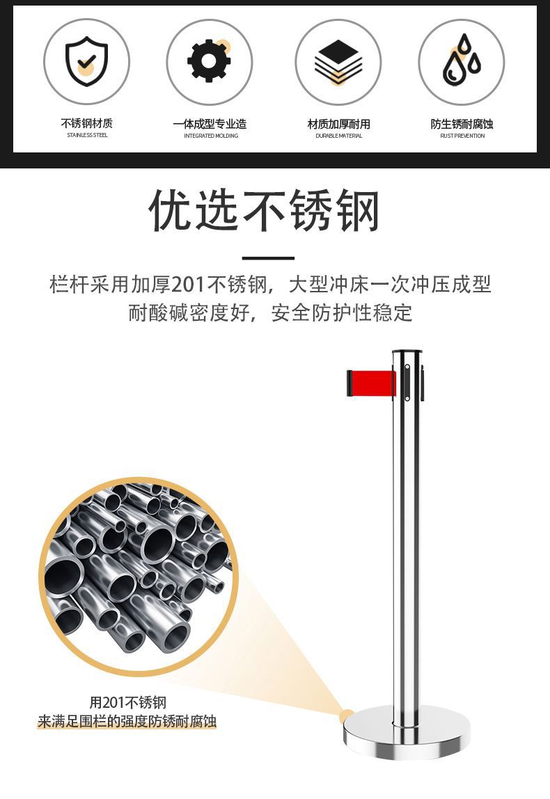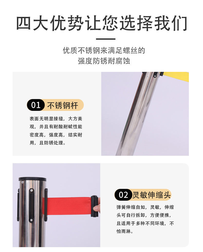 안전 경고 격리 벨트 텔레스코픽 대기 펜스 경고 라인 난간 스테인레스 스틸 가드 레일 은행 미터 라인 경고스토어 가기