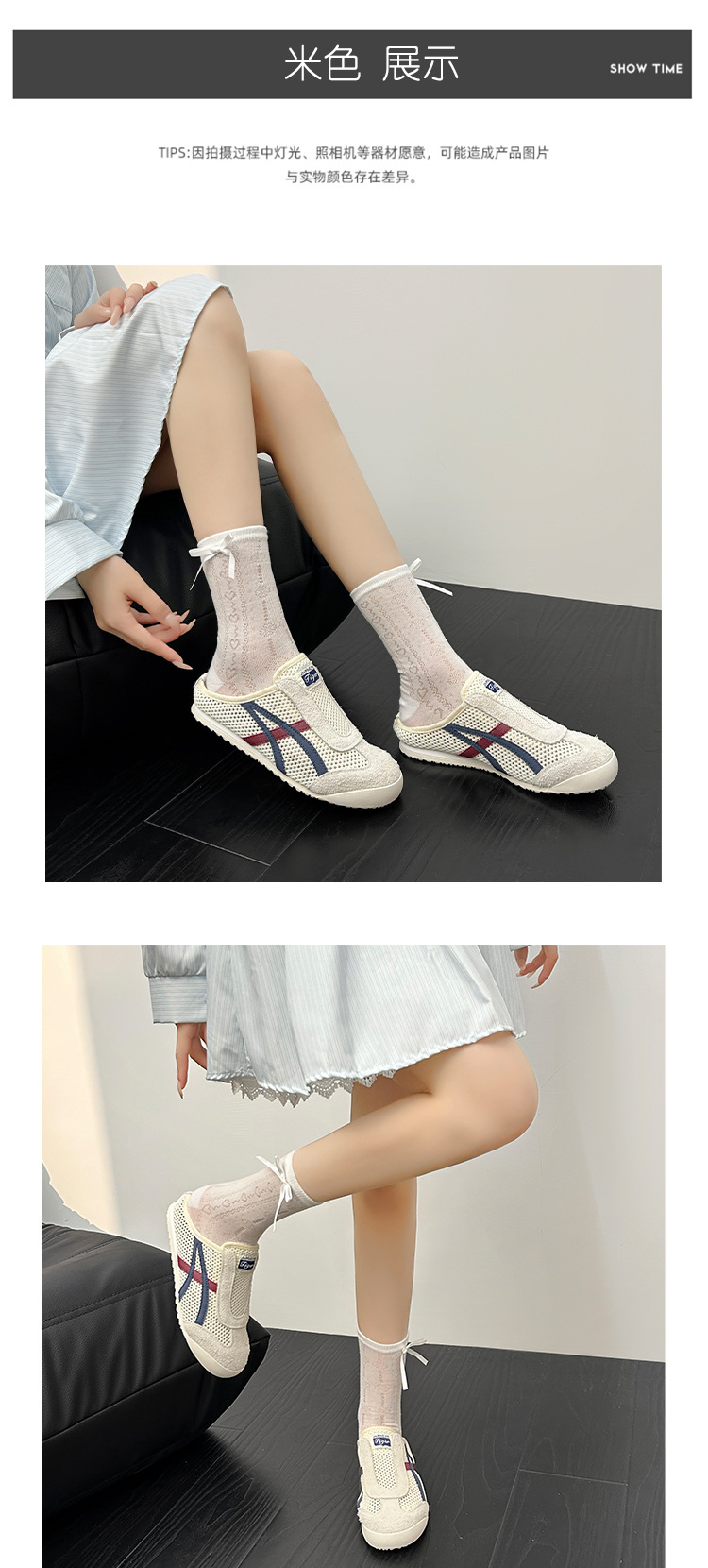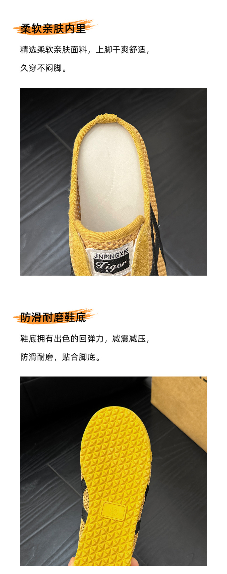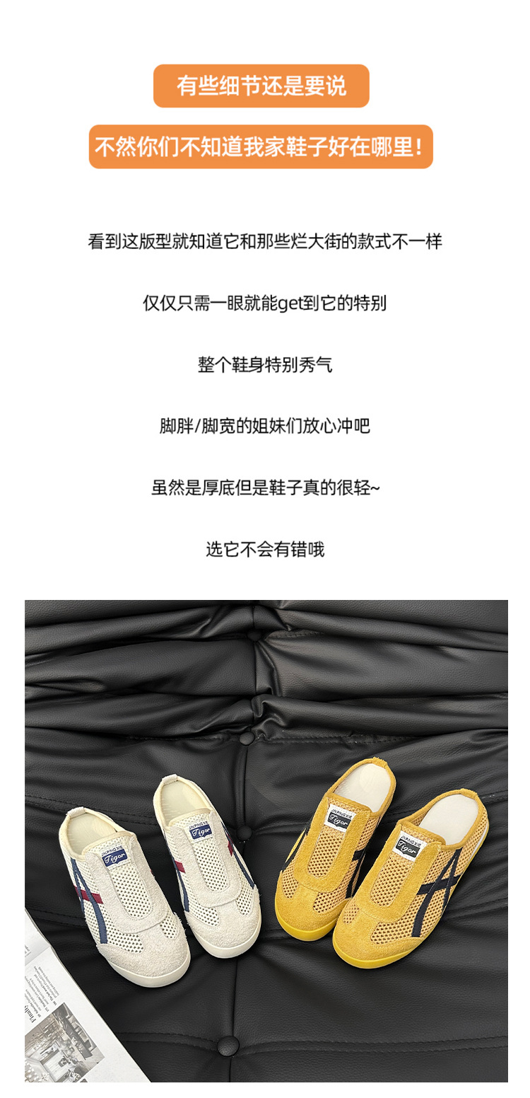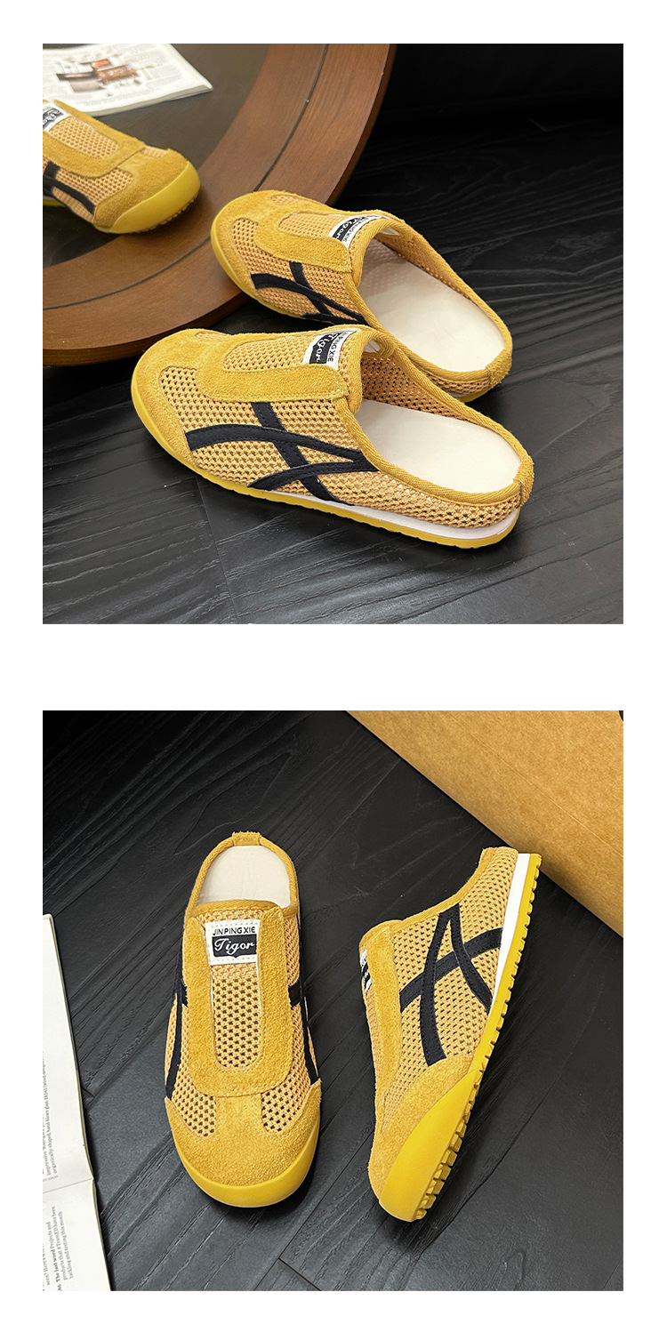 여성을위한 정품 가죽 발가락 반 슬리퍼 2025 여름 새로운 메쉬 통기성 미국 복고풍 노란색 플랫 바닥 게으른 슬리퍼스토어 가기