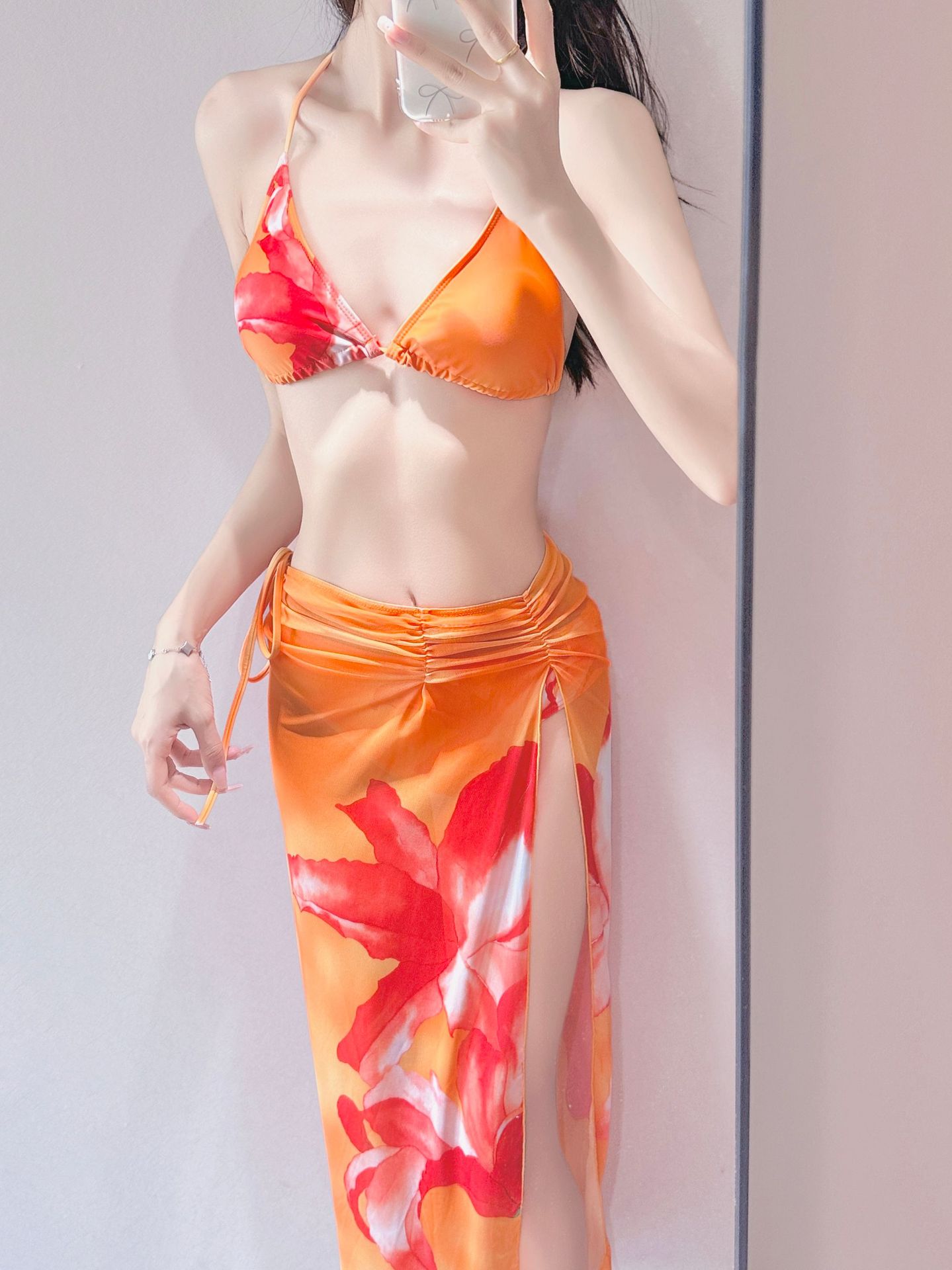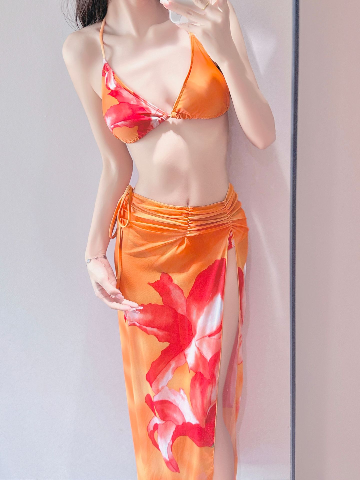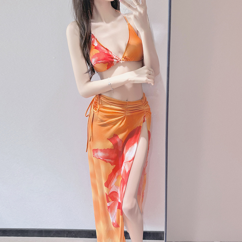 새로운 비키니 수영복 여성 3 피스 휴가 슬리밍 롱 스커트 스플릿 거즈 스커트 온천 수영복 하이 엔드 순수한 욕망 스타일스토어 가기