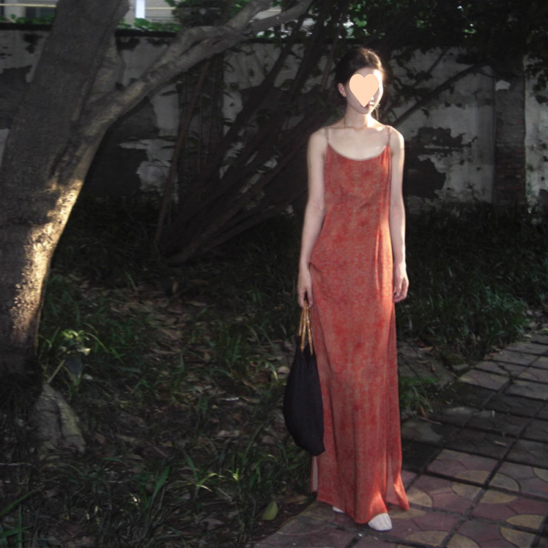 새로운 중국 스타일 복고풍 오렌지 가을 게으른 기질 여성을위한 간단한 슬림 롱 서스펜더 스커트스토어 가기